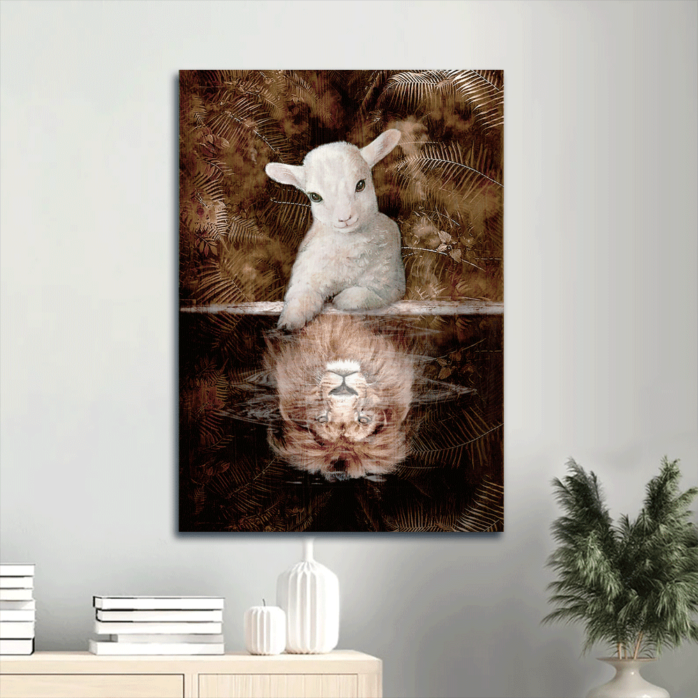 Make your home becomes more perfect with our Jesus Portrait Canvas- Amazing Lamb, Lion King, King Of Kings, Animal Of Jesus Canvas- Gift For Christian . It depicts an incredible image of the Lamb of God during Jesus’s reign and its reflection “the Lion of Judah” in the water. Jesus Christ is a perfect combination of the lion’s braveness, the lamb's purity and God’s benevolence. Furthermore, the color scheme makes it a versatile piece in nearly any style of home. Our Jesus Portrait Canvas- Amazing Lamb, Lion King, King Of Kings, Animal Of Jesus Canvas- Gift For Christian is also perfect for those who believe in Jesus. Let’s show your passion to visitors with this unique wall art which is hung on your wall.