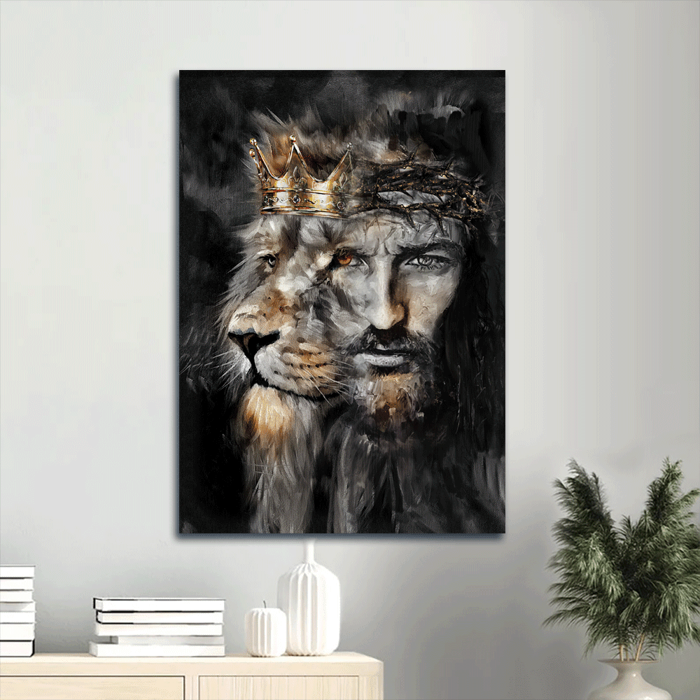 Jesus Portrait Canvas- Amazing Lion Of Judah, Jesus Painting, Crown Of Thorn Canvas- Gift For Christian.