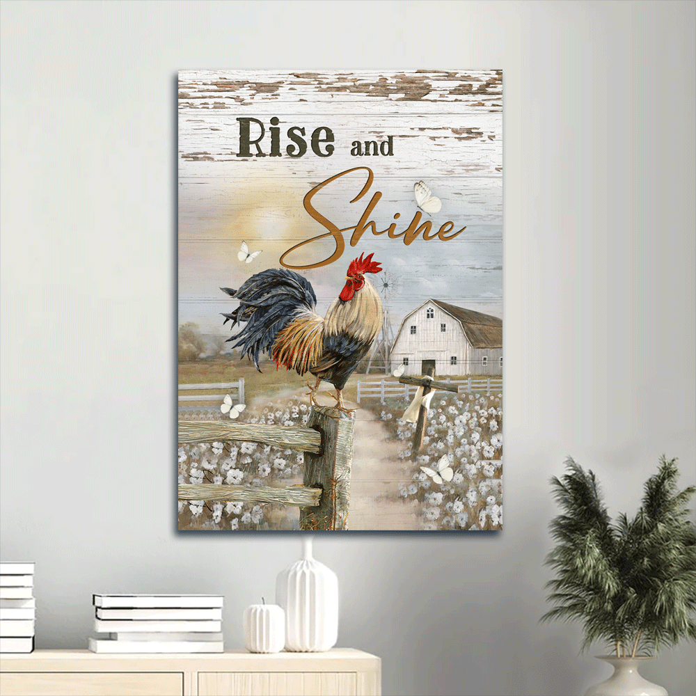 Jesus Portrait Canvas - Amazing rooster drawing, White flower field, Sunset Portrait Canvas - Gift For Christian - Rise and shine