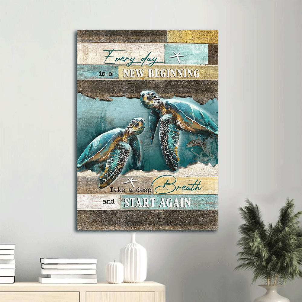 Let the nature view in our Amazing sea turtle, Deep ocean, White starfish, Every day is a new beginning - Jesus Portrait Canvas Prints, Christian Wall Art add more refreshment to your home. With an ocean view, adorable turtles, white starfish and meaningful quote, this painting will breathe life into any room. This Amazing sea turtle, Deep ocean, White starfish, Every day is a new beginning - Jesus Portrait Canvas Prints, Christian Wall Art is also a great gift to loved ones who love turtles.