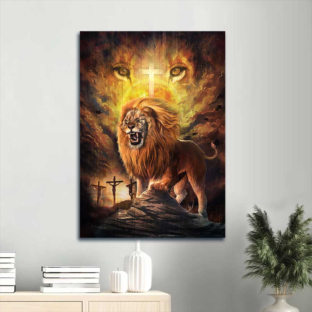 Jesus Portrait Canvas - Angry lion painting, Lion of Judah, Jesus on the cross Portrait Canvas - Gift For Christian