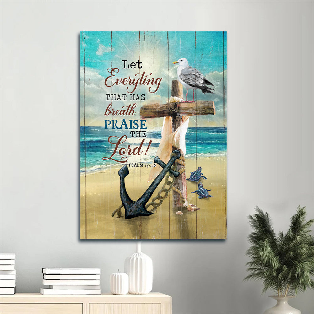 Jesus Portrait Canvas- Antique Anchor, Wooden Cross, Pretty Seagull Portrait Canvas- Gift For Christian- Let Everything That Has Breath