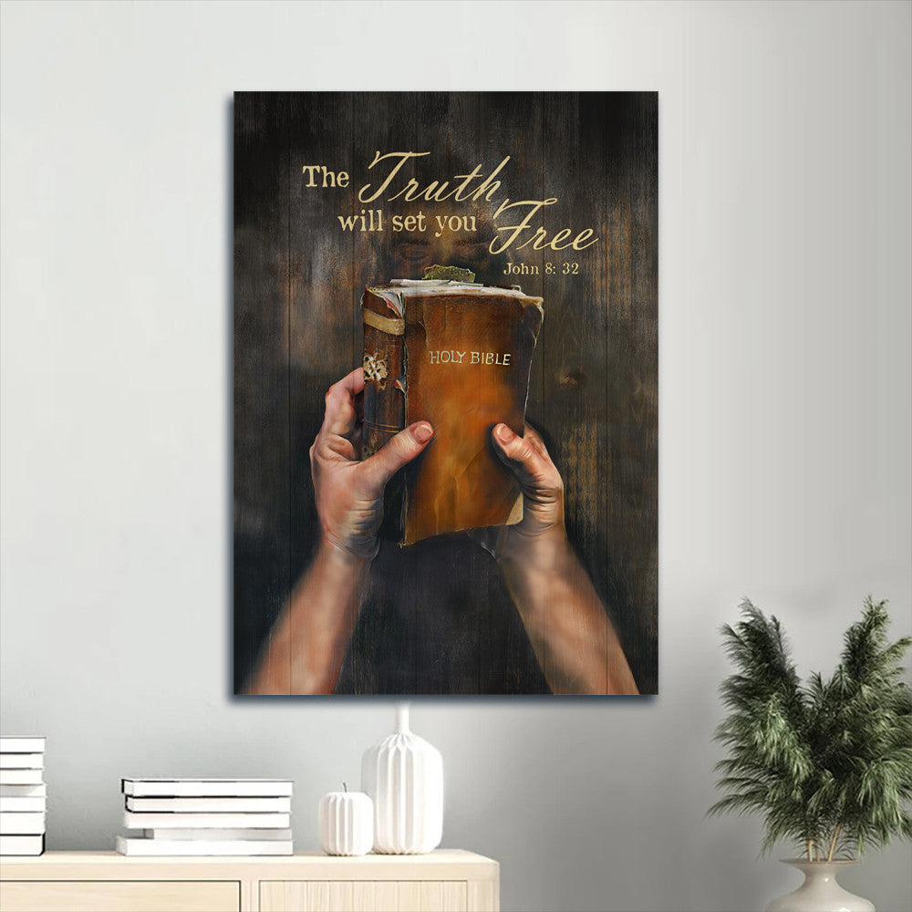 Jesus Portrait Canvas- Antique Bible, Take My Hand, Dark Night Portrait Canvas- Gift For Christian- The Truth Will Set You Free