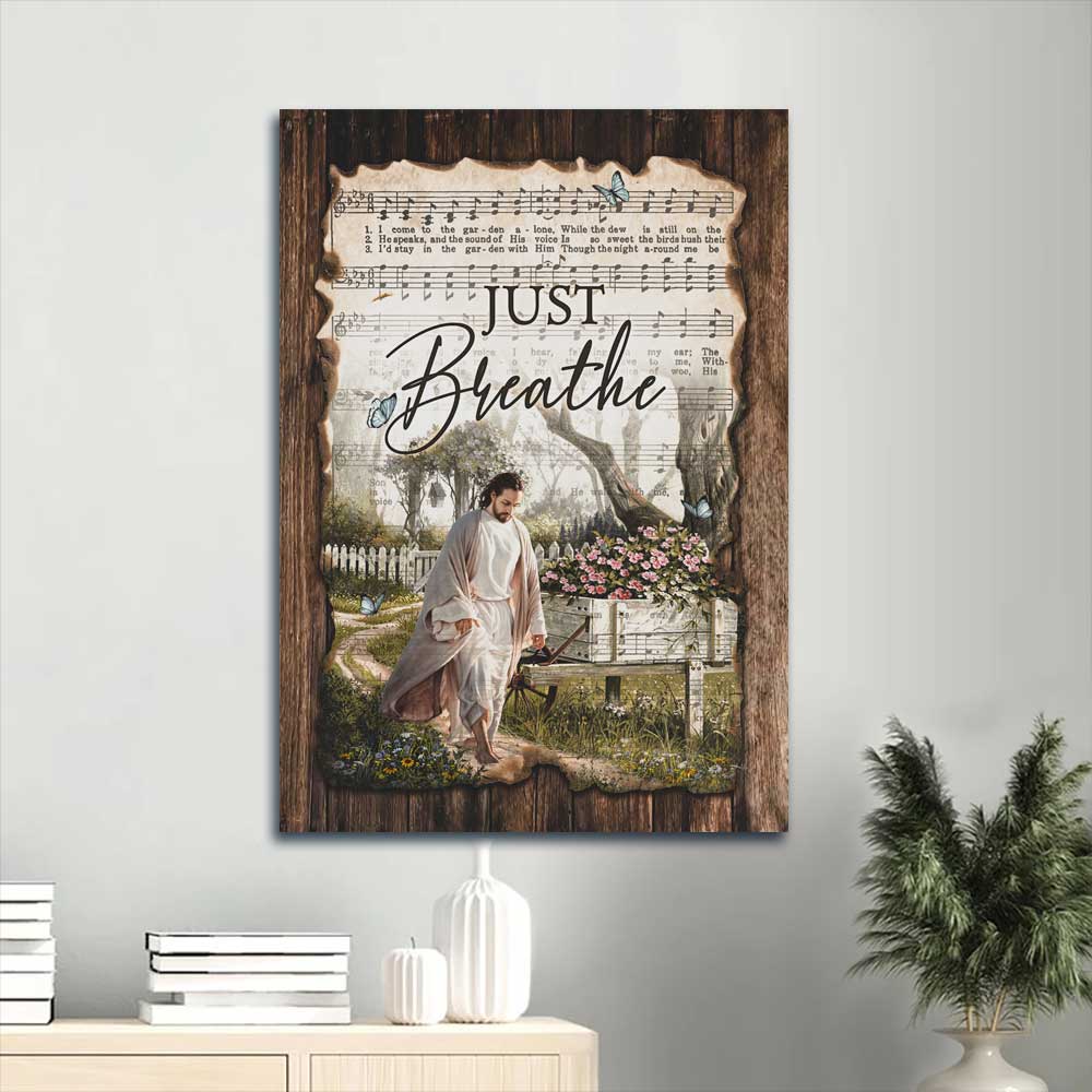 Antique music sheet, Walking with Jesus, Pretty flower garden, Just breathe - Jesus Portrait Canvas Prints, Home Decor Wall Art will suit any room from the living room, bedroom, kitchen to the entryway in your house or your office, building, hotel, restaurant and even the coffee shop,...