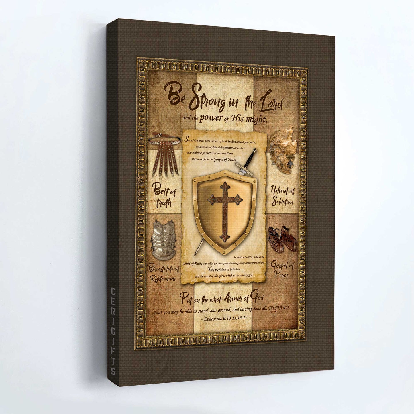 Perfect Wall Decoration: Faith, God, Jesus Landscape Canvas - Armor of God Landscape Canvas, Shield of Faith Landscape Canvas, Be strong in the Lord and the power of His might Landscape Canvas - Wall Decor Framed Gift For Christian, Believer In Jesus, Christian Wall Art is wall decor hang in office, living room, bedroom, this bible modern artwork design perfect matches any space and any home decor style.
