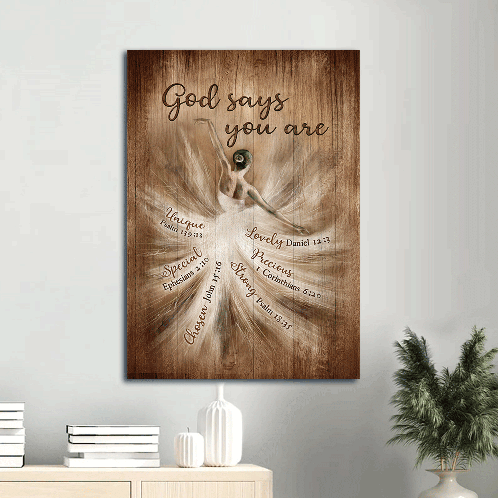 Everyone has a special talent, and all you had to do was share it with the rest of the world. If you have ever rejected yourself, this Jesus Portrait Canvas- Ballerina Drawing, Vintage Painting, Jesus Canvas- Gift For Christian- God Says You Are will undoubtedly motivate you and make you believe in your incredible abilities.