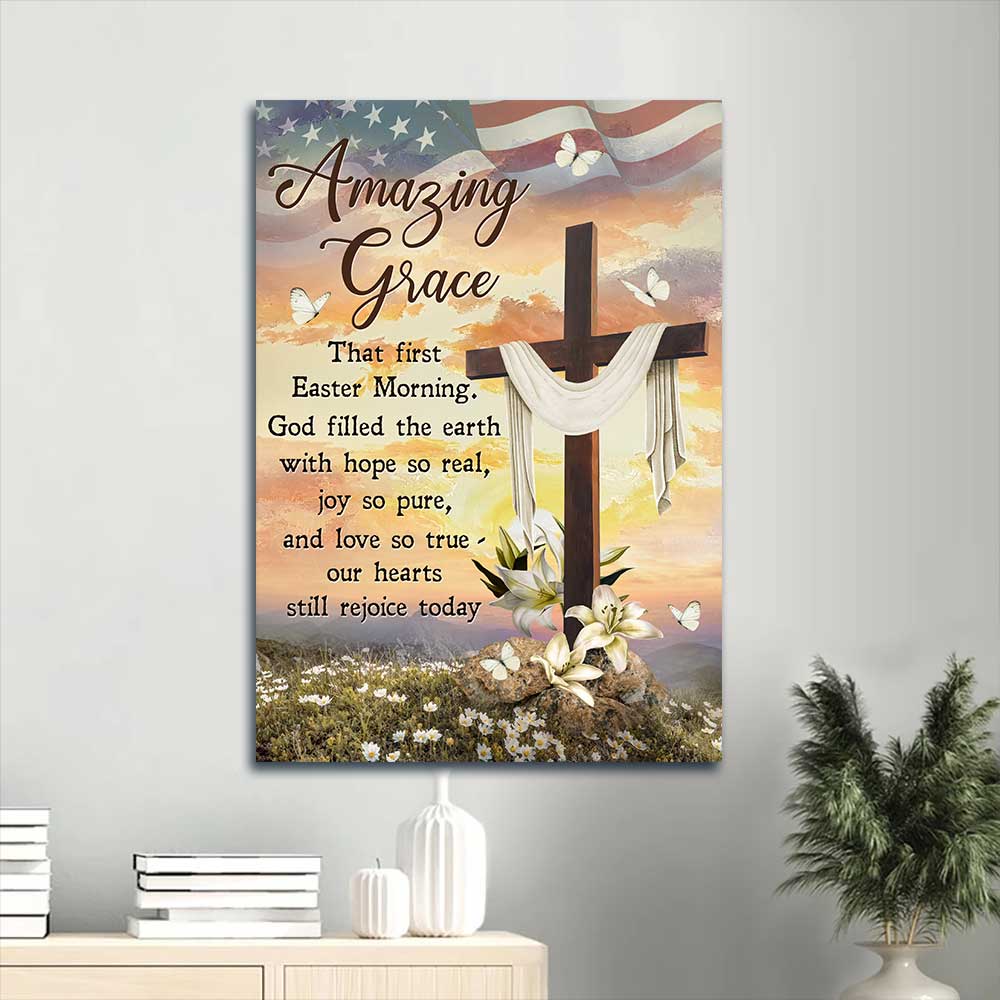Jesus Portrait Canvas - Beautiful Cross, Lily Flower, Pretty Sunset, Us Flag Portrait Canvas - Gift For Christian - Amazing Grace