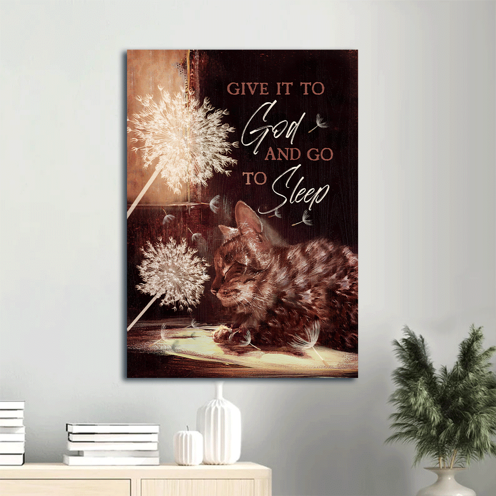 Jesus Portrait Canvas- Beautiful Dandelion, Cute Cat Canvas- Gift For Christian- Give It To God And Go To Sleep