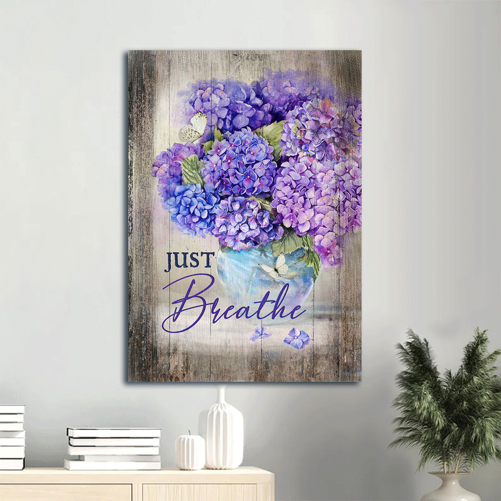 Jesus Portrait Canvas- Beautiful hydrangea drawing, Purple flower canvas- Gift for Christian- Just breathe is an attractive artwork that may be placed in any part of your home, including the living room, bedroom, kitchen, and even the outdoor space.