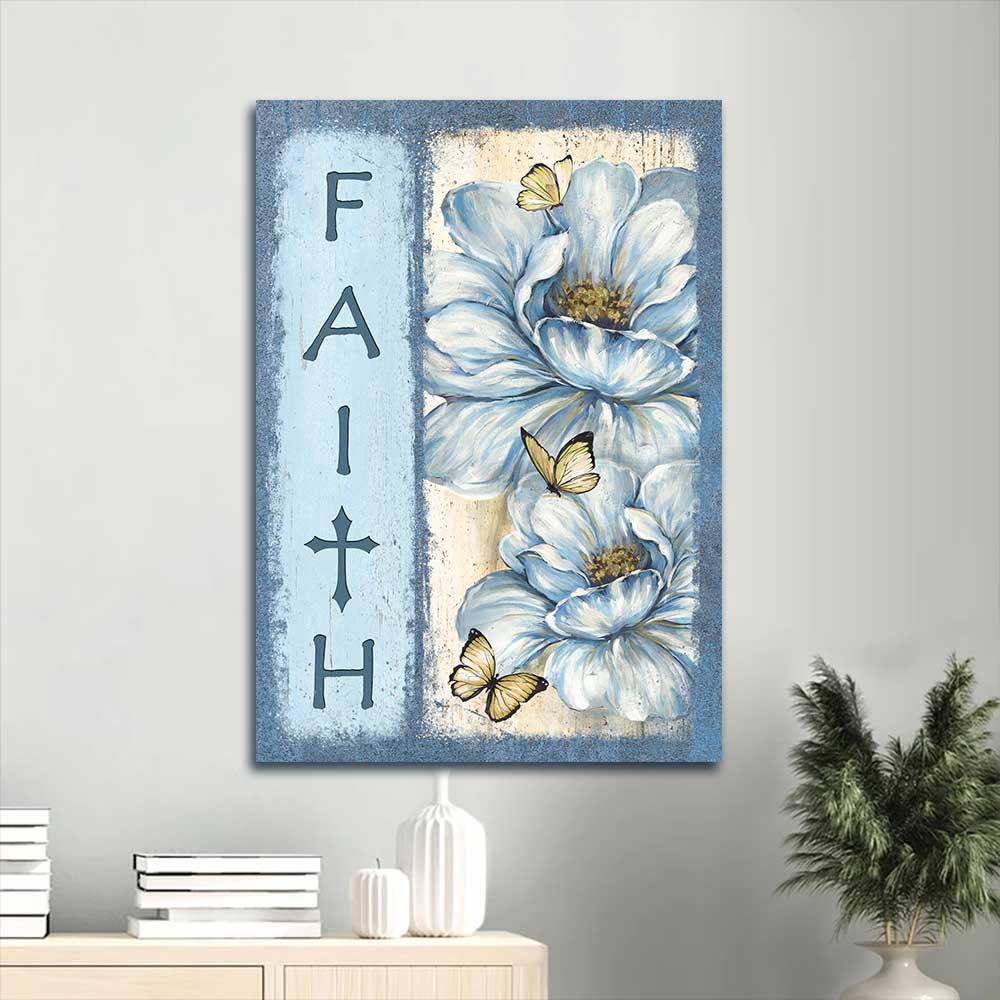 Jesus Portrait Canvas - Beautiful white flower, Pretty butterfly, Pastel background Portrait Canvas - Gift For Christian - Faith