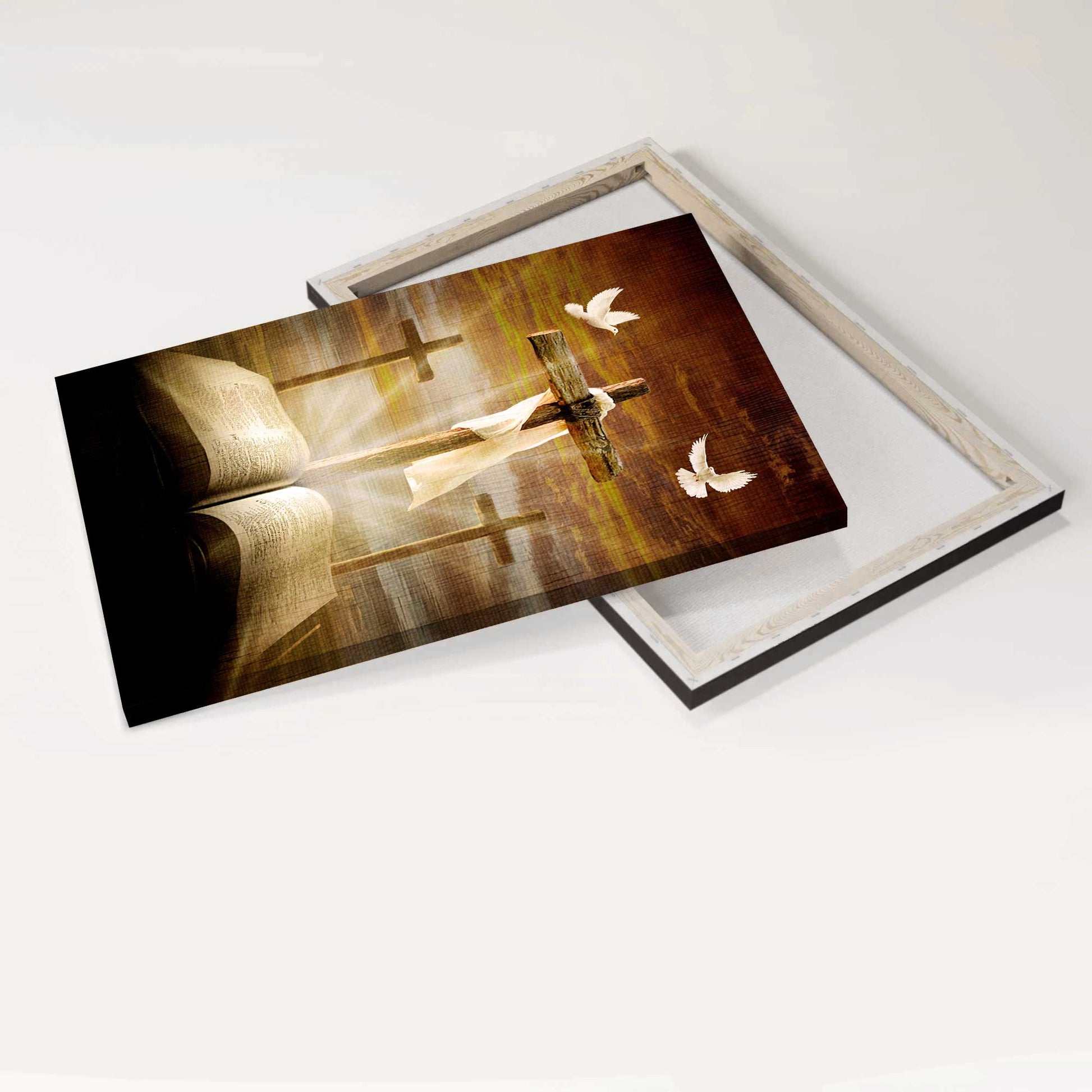 Add a hint of wonderlust to your walls with this Big cross, Amazing halo, Bible painting, White dove symbol - Jesus Portrait Canvas Prints, Christian Wall Art!
