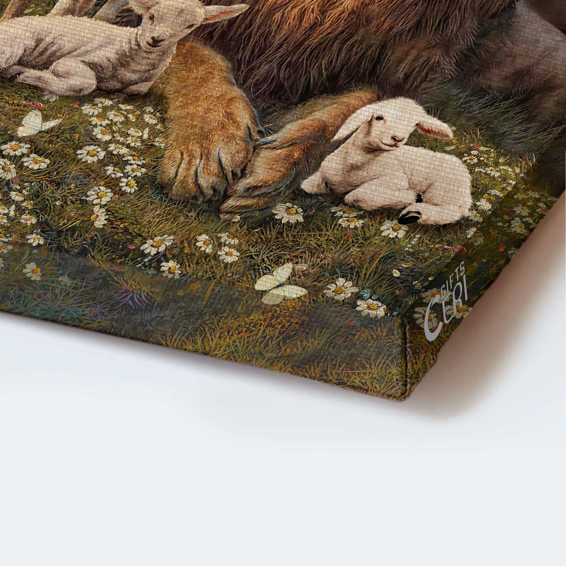 Jesus Portrait Canvas - Big lion drawing, Little lamb artwork, Beautiful US Canvas, Daisy garden Portrait Canvas - Gift For Christian - Portrait Canvas