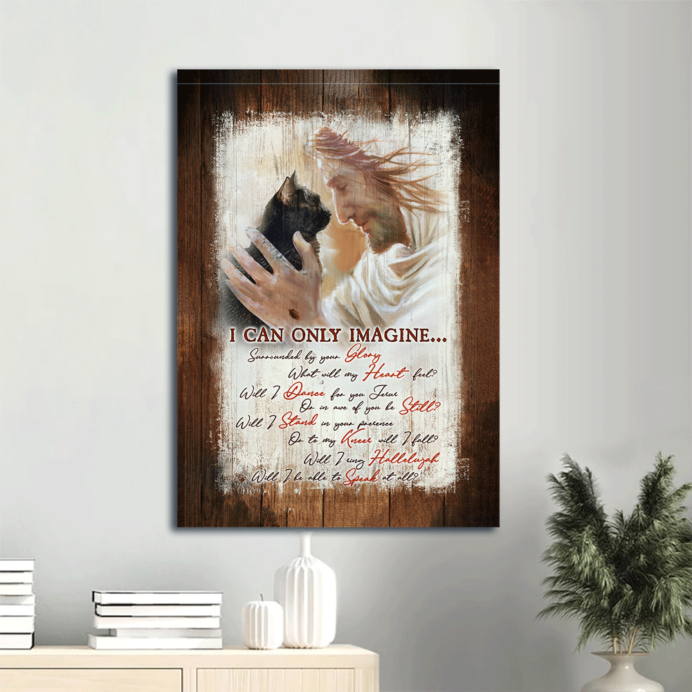 Jesus Portrait Canvas- Black cat, Jesus art work, Take my hand - Gift for Christian, Cat lover- I can only imagine - Portrait Canvas Prints, Wall Art