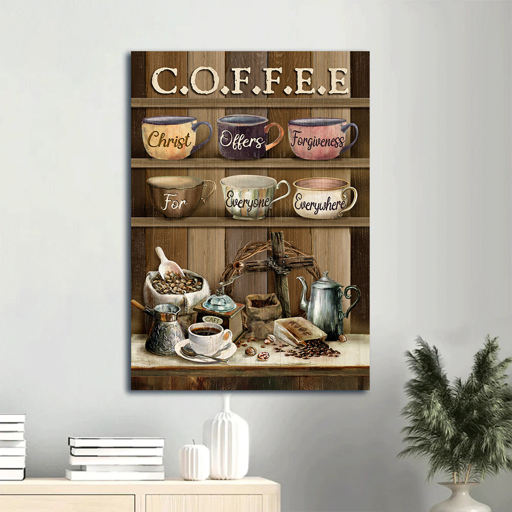Jesus Portrait Canvas - Coffee Bar, Cup Of Coffee Portrait Canvas - Gift For Christian - Christ Offer Forgiveness For Everyone Everywhere Portrait Canvas