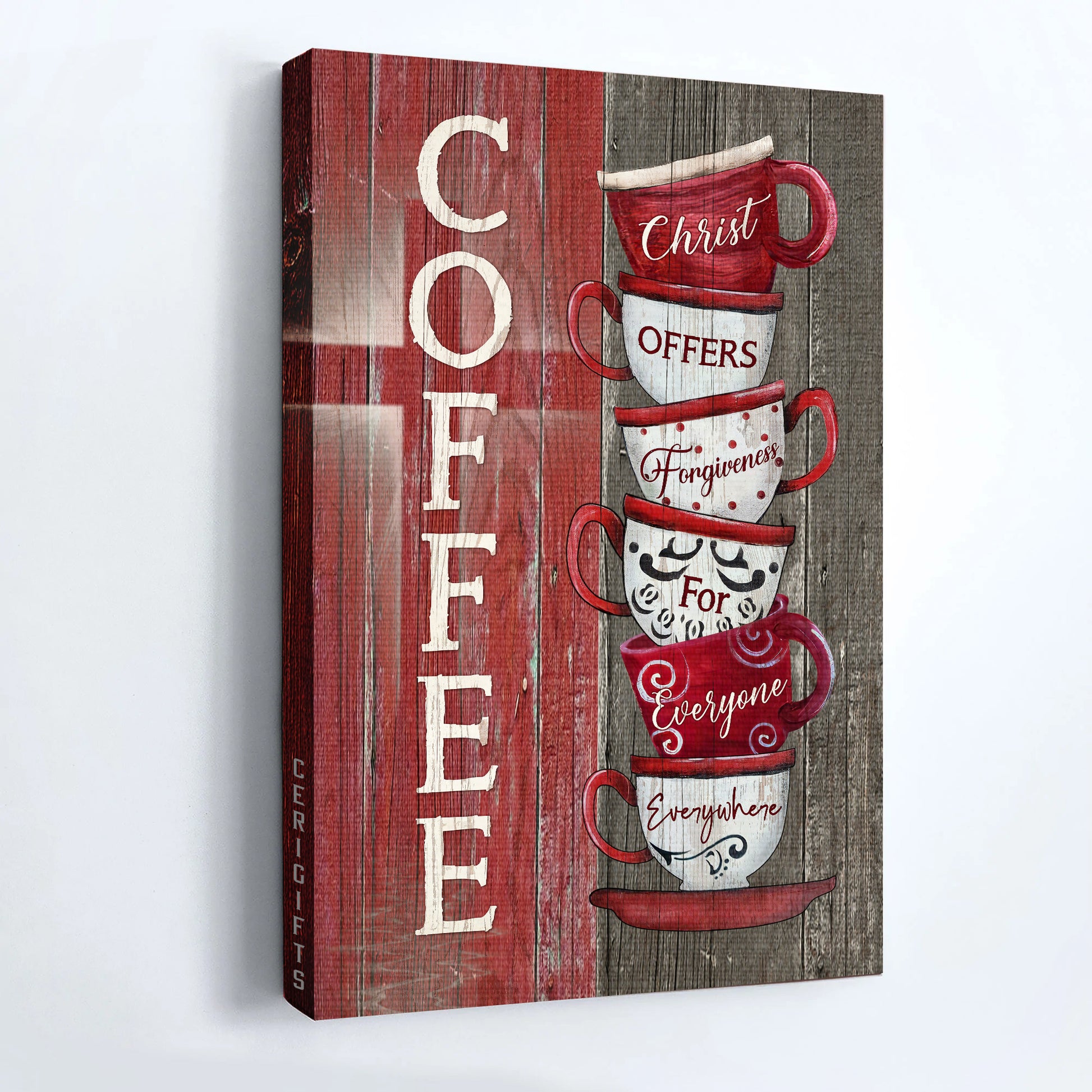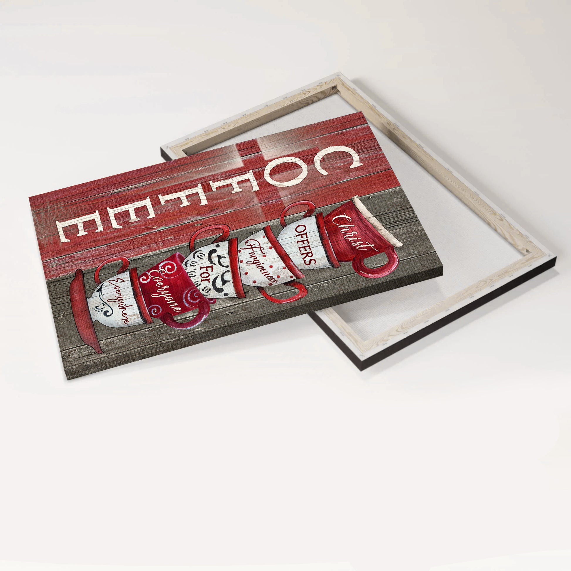 Jesus Portrait Canvas - Coffee Cups, Stacked Cups, Red And White Coffee Cups, Wooden Cross Portrait Canvas - Gift For Christian - Christ Offers Forgiveness For Everyone Everywhere