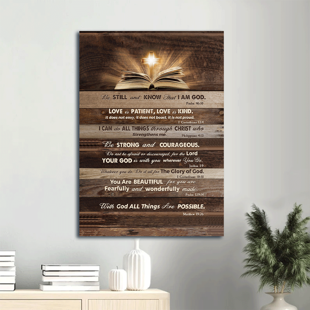 Jesus Portrait Canvas- Cross, Bible verses- Gift for Christian - Be still & know that I am God - Portrait Canvas Prints, Wall Art