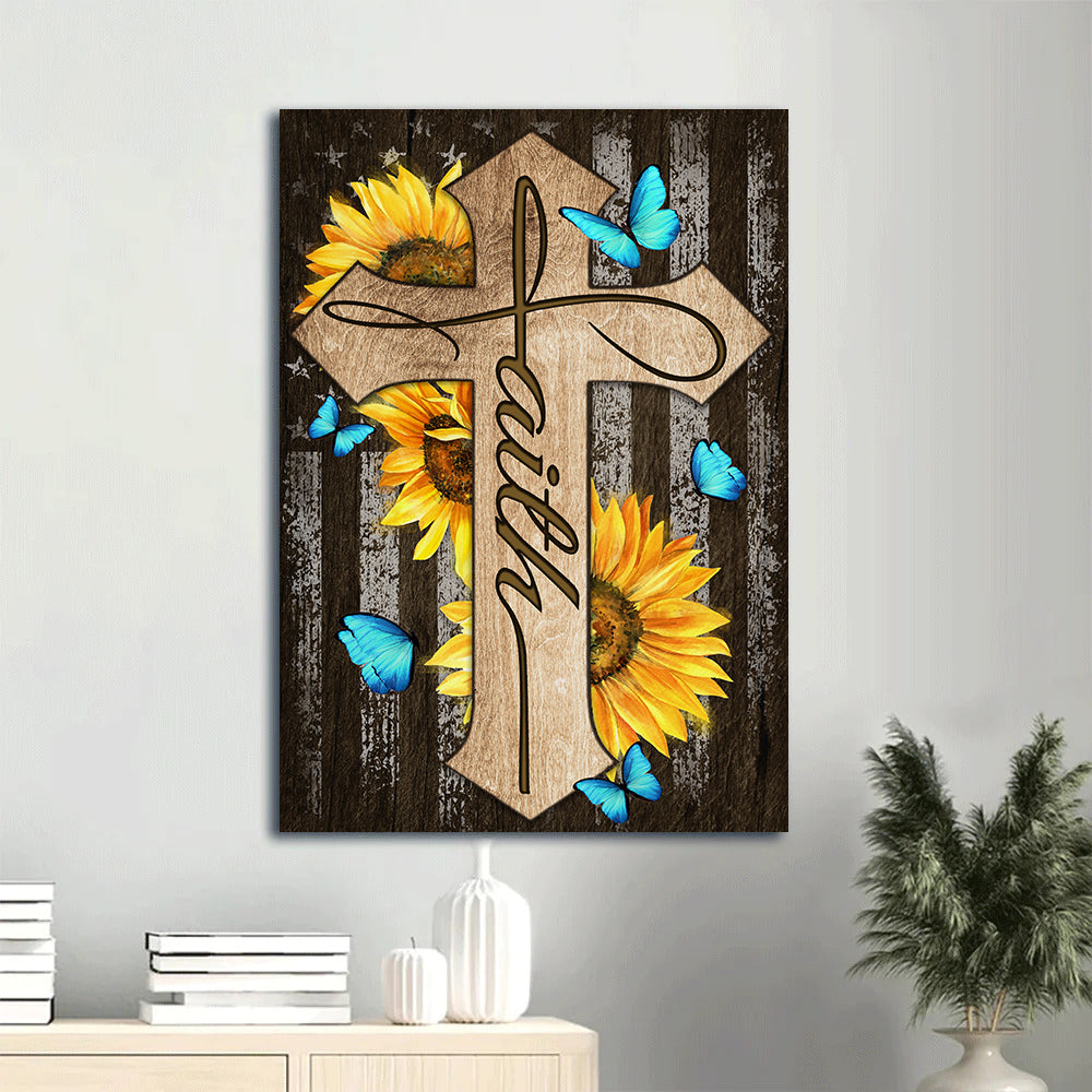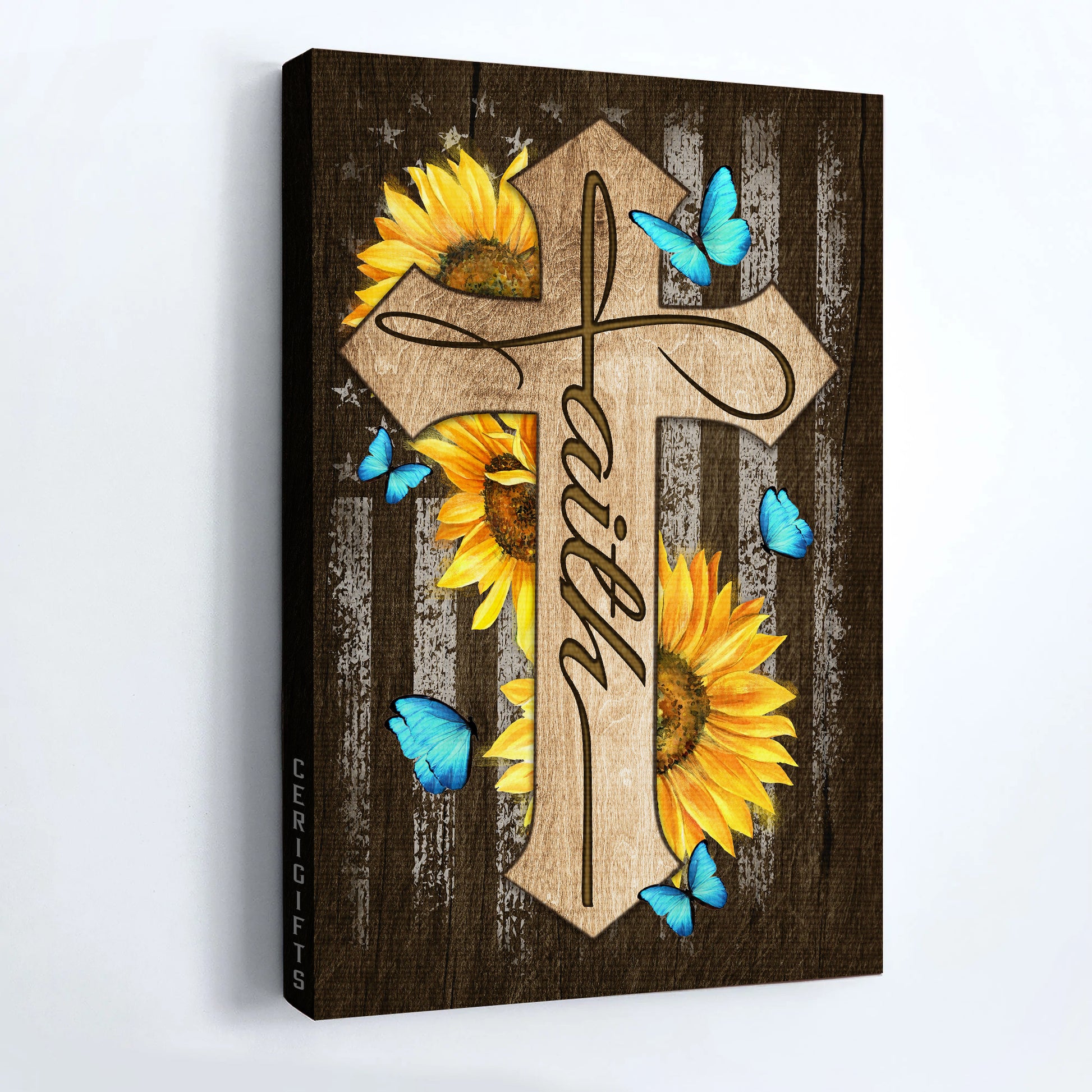 Jesus Portrait Canvas - Cross with sunflower, Faith canvas- Gift for Christian - Portrait Canvas Prints, Wall Art