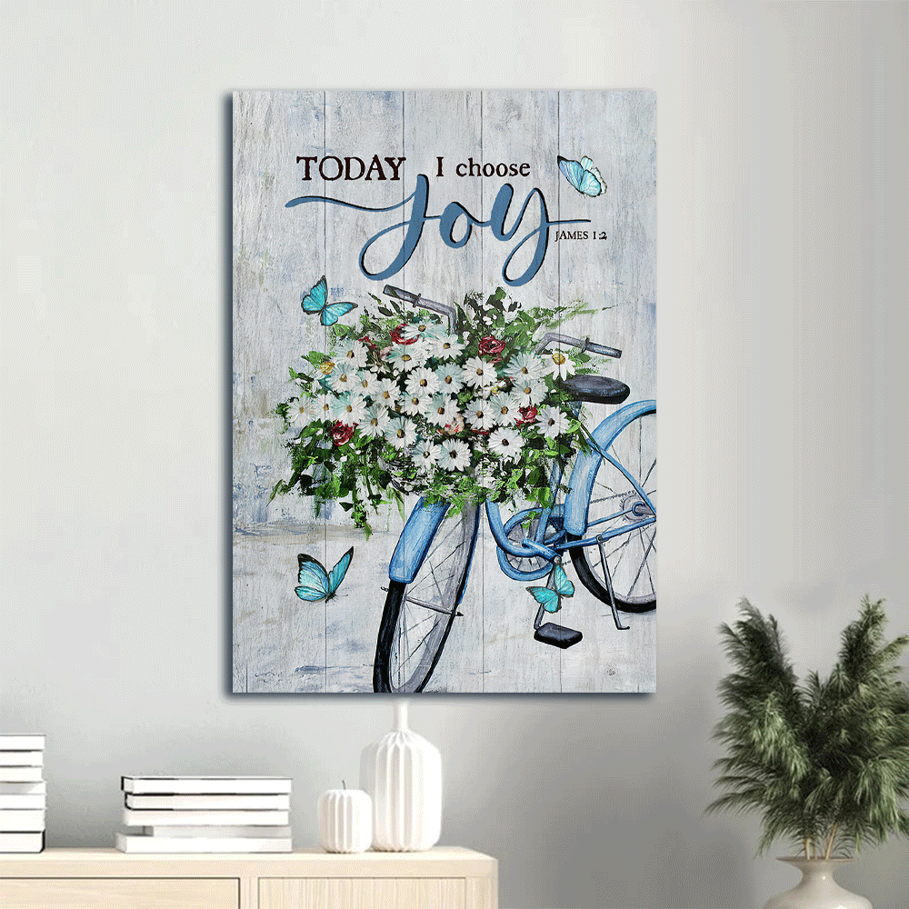 Jesus Portrait Canvas- Daisy flower, Blue bicycle, Blue butterfly canvas- Gift for Christian- Today I choose joy