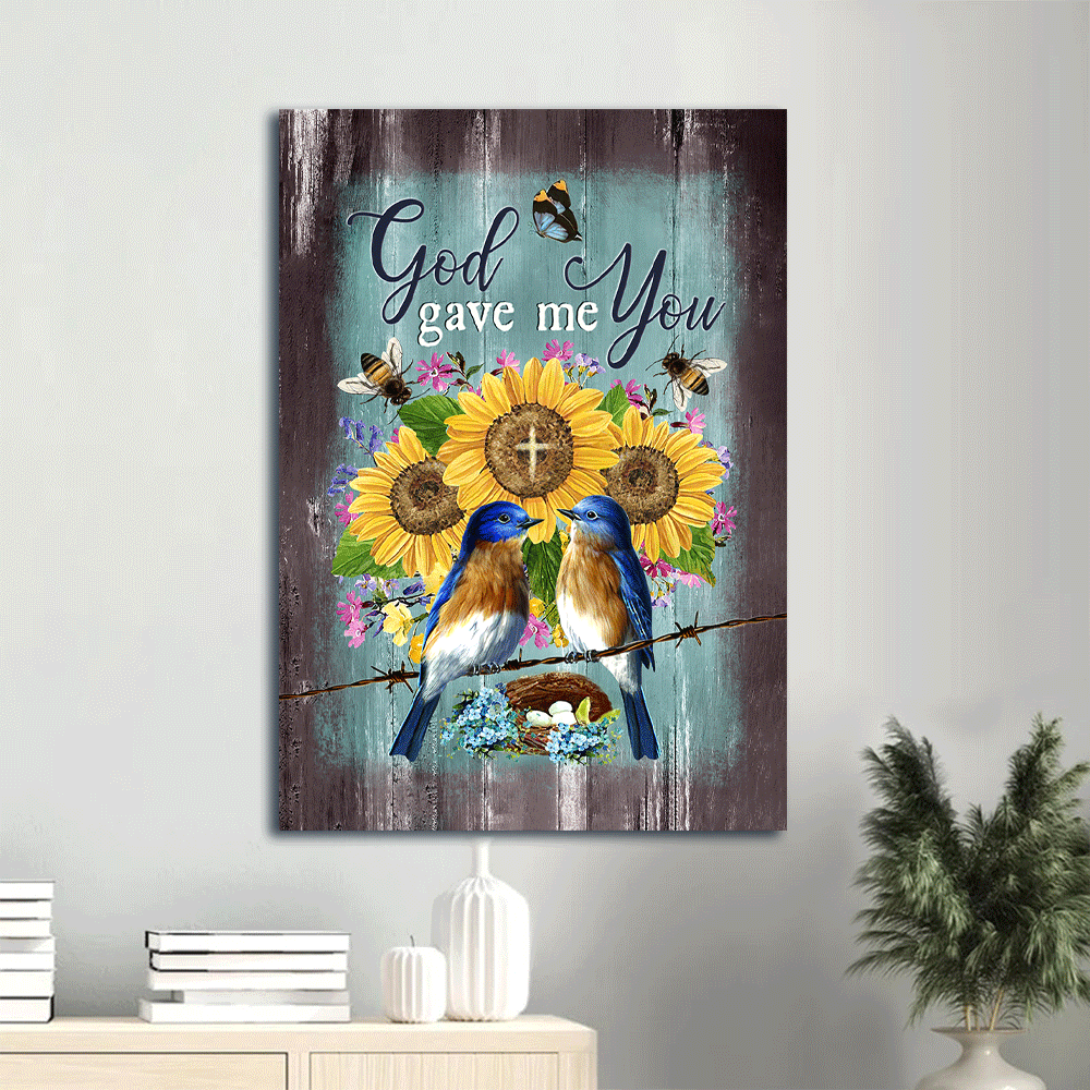 Jesus Portrait Canvas- Eastern bluebirds, Bird nest, Sunflower, Butterfly canvas- Gift for Christian- God gave me you.