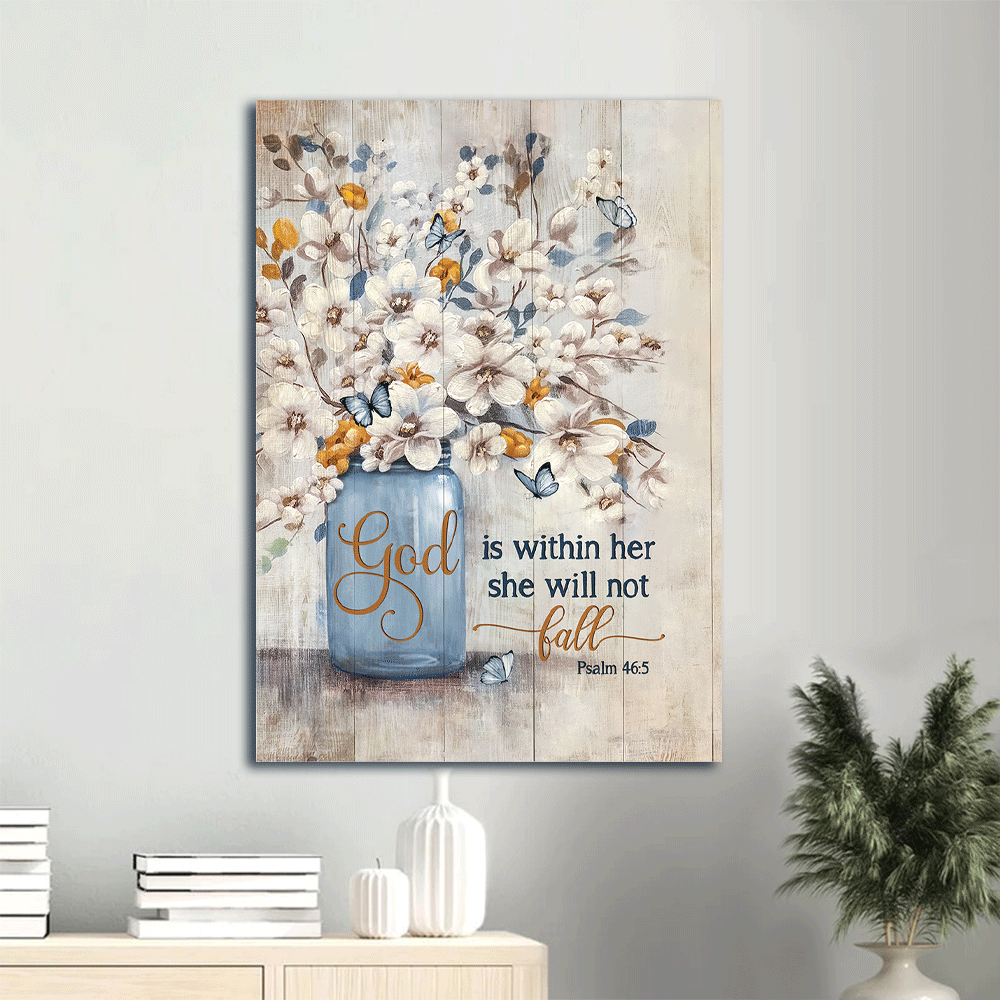 Jesus Portrait Canvas- Jasmine flower, Blue vase, Butterfly drawing canvas- Gift for Christian- God is within her - Portrait Canvas Prints, Christian Wall Art is an attractive canvas that may be placed in any part of your home, including the living room, bedroom, kitchen, and even the outdoor space.