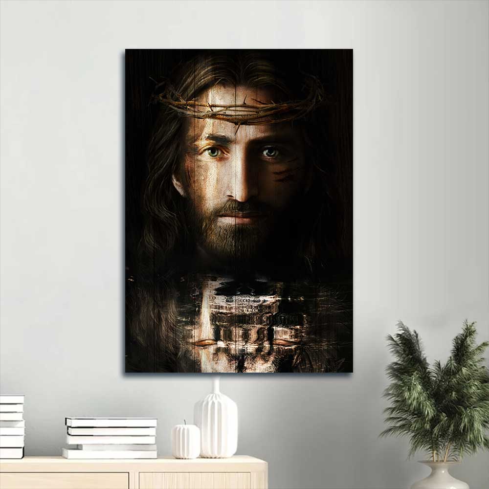 Jesus Portrait Canvas - Jesus Christ, Crown of thorns, Christ the redeemer Portrait Canvas - Inspirational gift, Gift For Religious Christian