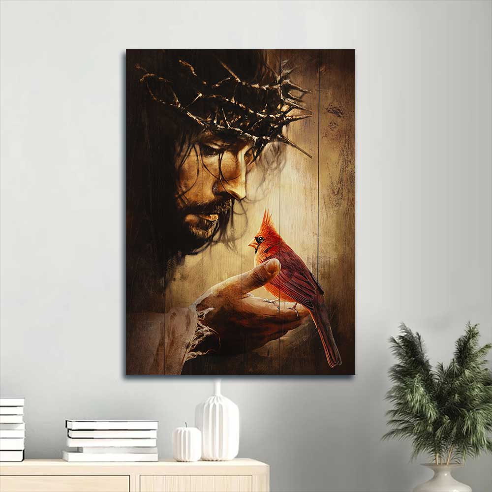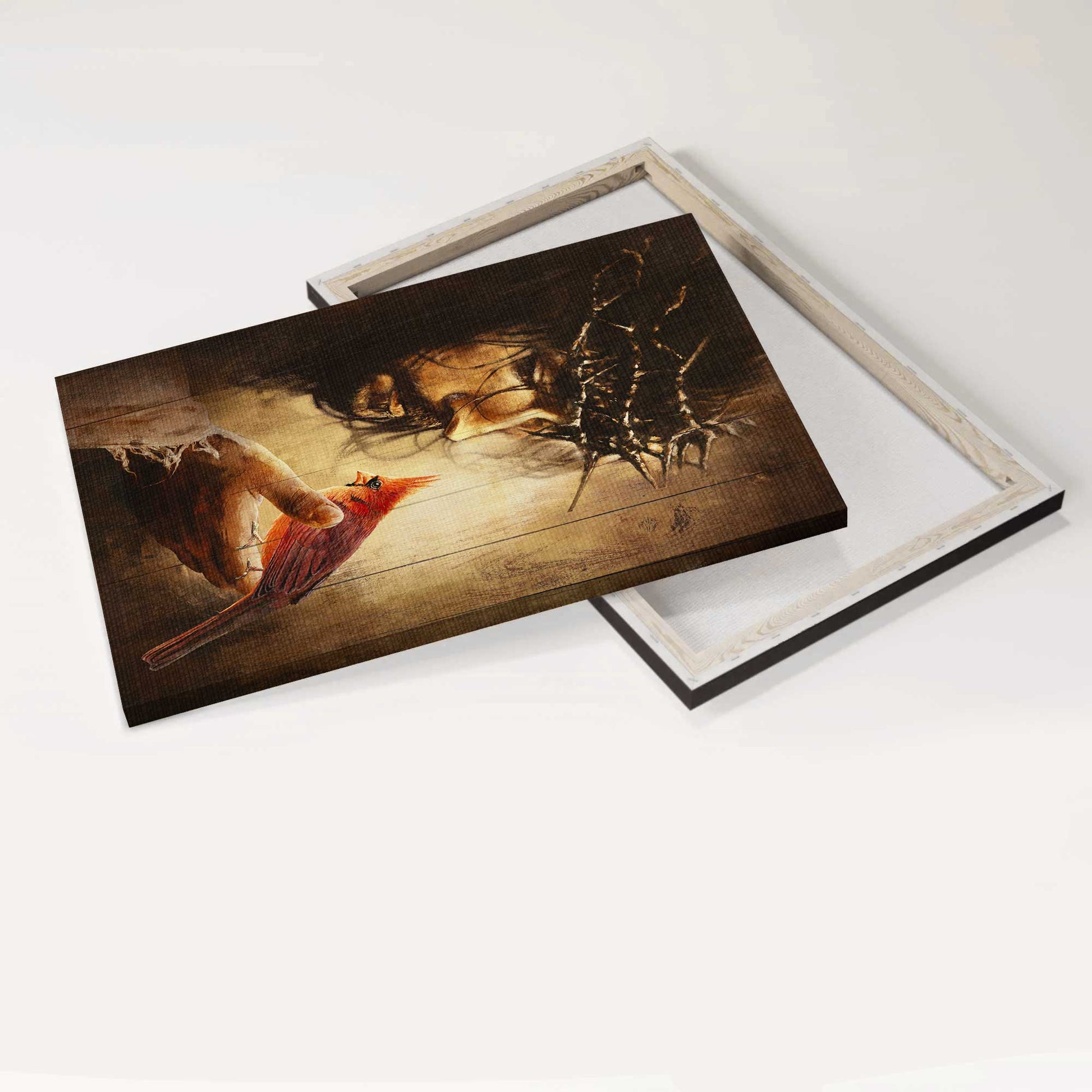 Jesus Portrait Canvas - Jesus hand, Red cardinals, Thorn crown Portrait Canvas - Gift For Christian Jesus Portrait Canvas Prints, Christian Wall Art