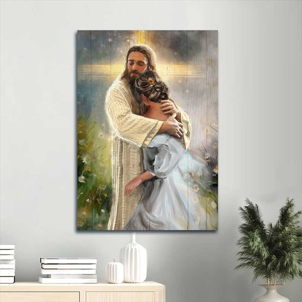 Jesus Portrait Canvas - Jesus hug, Daisy field, In the arms of God Portrait Canvas - Inspirational gift, Gift For Religious Christian