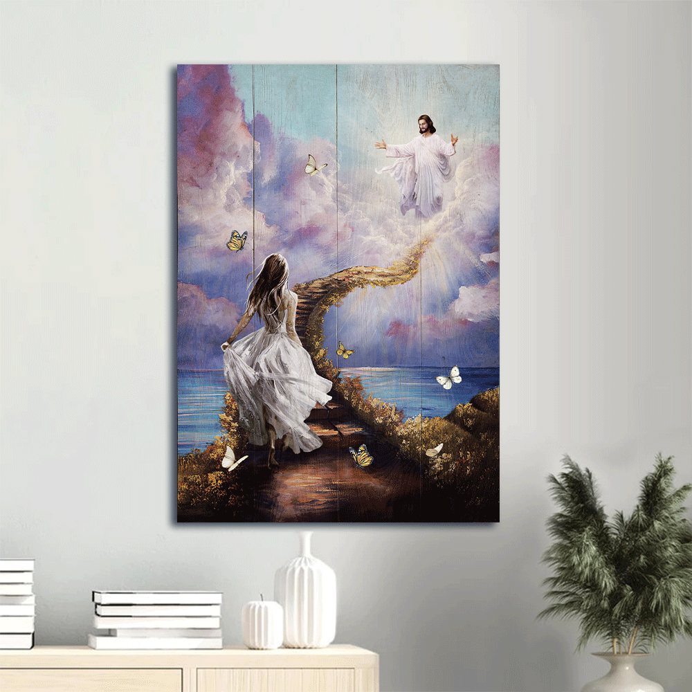 Jesus Portrait Canvas- Jesus painting, Beautiful girl drawing, Path to heaven, Jesus is waiting canvas- Gift for Christian - Portrait Canvas Prints, Christian Wall Art