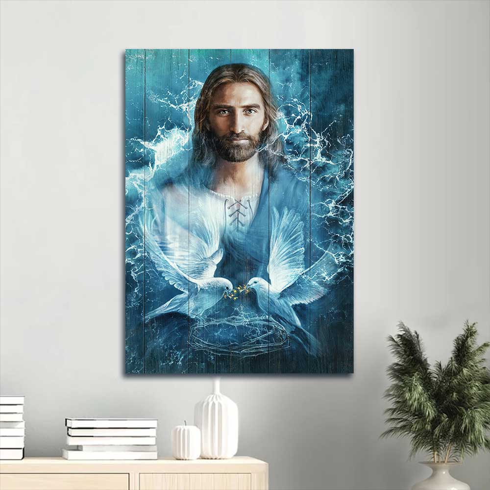 Jesus Portrait Canvas - Jesus painting, Bird couple, Blue water Portrait Canvas - Gift For Christian Jesus Portrait Canvas Prints, Christian Wall Art