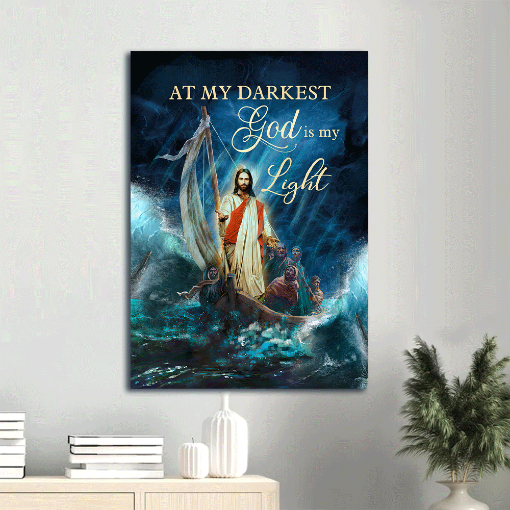 Jesus Portrait Canvas- Jesus Painting, Calming the storm- Gift for Christian- At my darkest God is my light - Portrait Canvas Prints, Wall Art