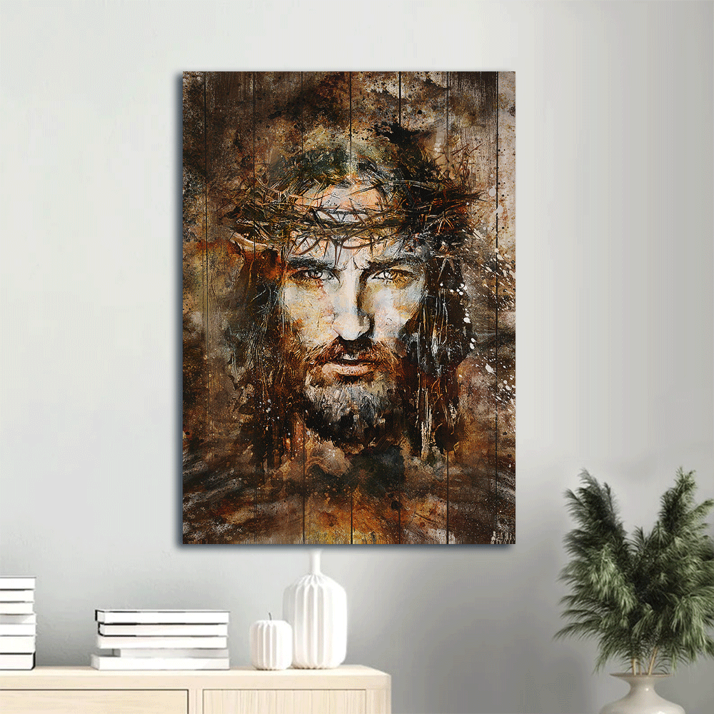 Jesus Portrait Canvas- Jesus painting, Crown of thorns, Jesus face canvas- Gift for Christian - Portrait Canvas Prints, Christian Wall Art