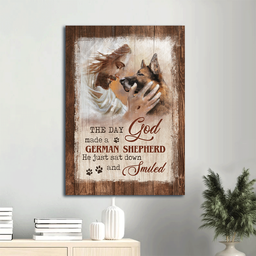 Jesus Portrait Canvas- Jesus painting, German Shepherd - Gift for Christian, Dog lover- The day God made a German Shepherd - Portrait Canvas Prints, Christian Wall Art