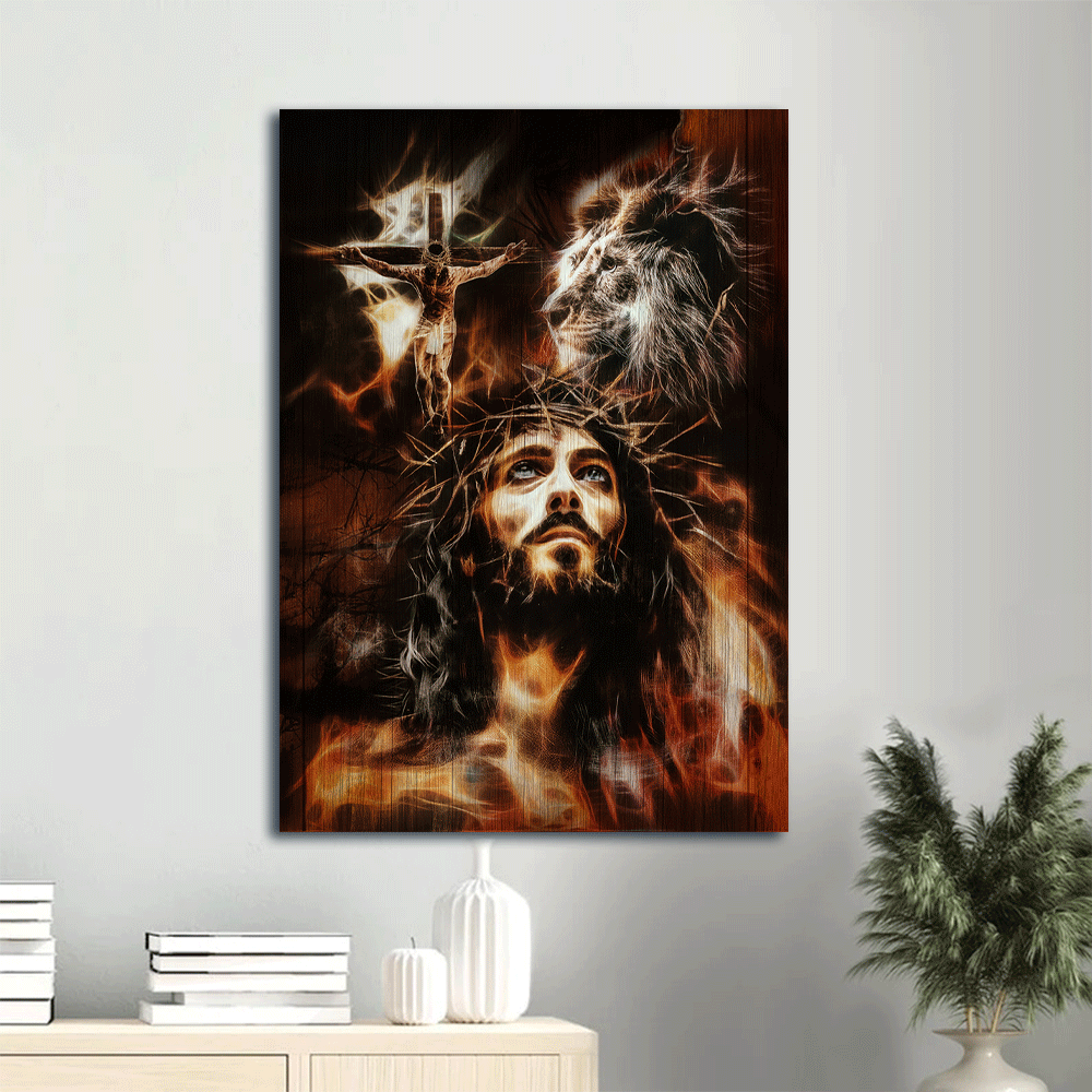 Jesus Portrait Canvas- Jesus painting, Lion of Judah, The flame, The sacrifice of Jesus Christ - Gift for Christian - Portrait Canvas Prints, Christian Wall Art