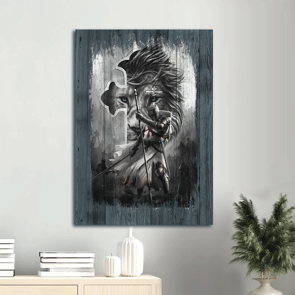 Jesus Portrait Canvas- Knight painting, Lion of Judah and the Cross - Gift for Christian - Portrait Canvas Prints, Wall Art