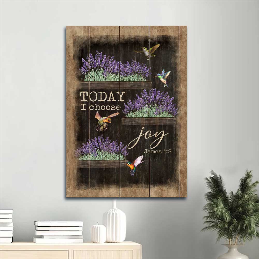 Jesus Portrait Canvas - Lavender flower, Hummingbird drawing, Black background Canvas - Gift For Christian - Today I choose joy Portrait Canvas