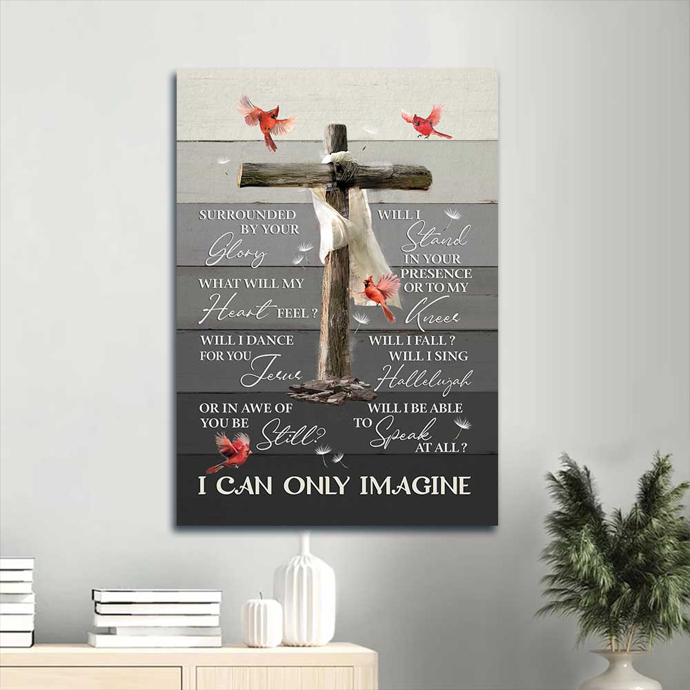 Jesus Portrait Canvas - Light black background, Wooden cross, Cardinal Canvas - Gift For Christian - I can only imagine Portrait Canvas