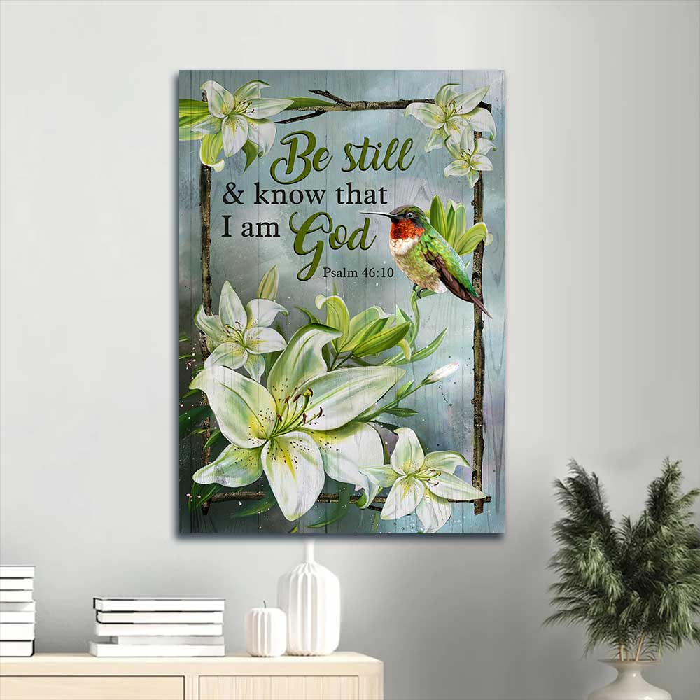 Let’s decorate Jesus Portrait Canvas - Lily flower, Hummingbird painting, Still life painting Canvas - Gift For Christian - Be still and know that I am God Portrait Canvas in your house from kitchen, bedroom, and bathroom to living room.