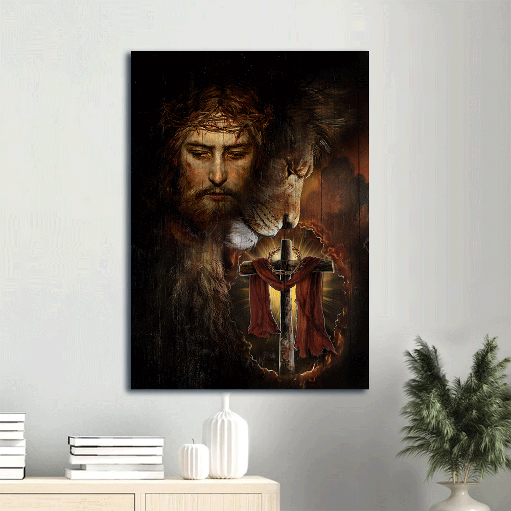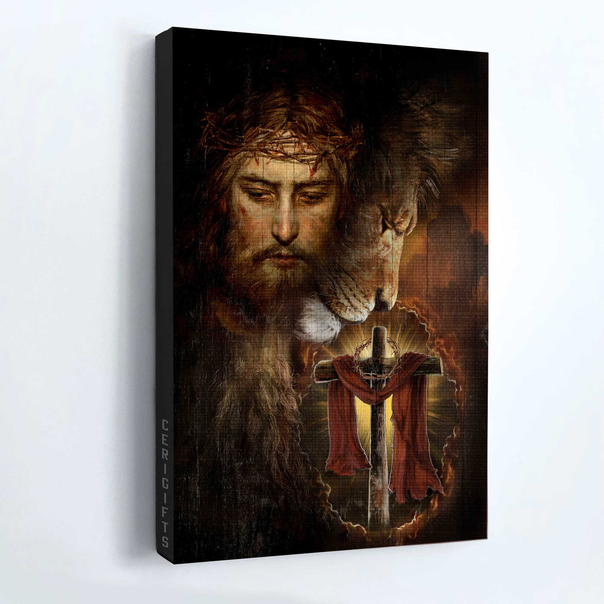 Jesus Portrait Canvas - Lion of Judah, Amazing wooden cross Portrait Canvas - Inspirational gift, Gift For Christian