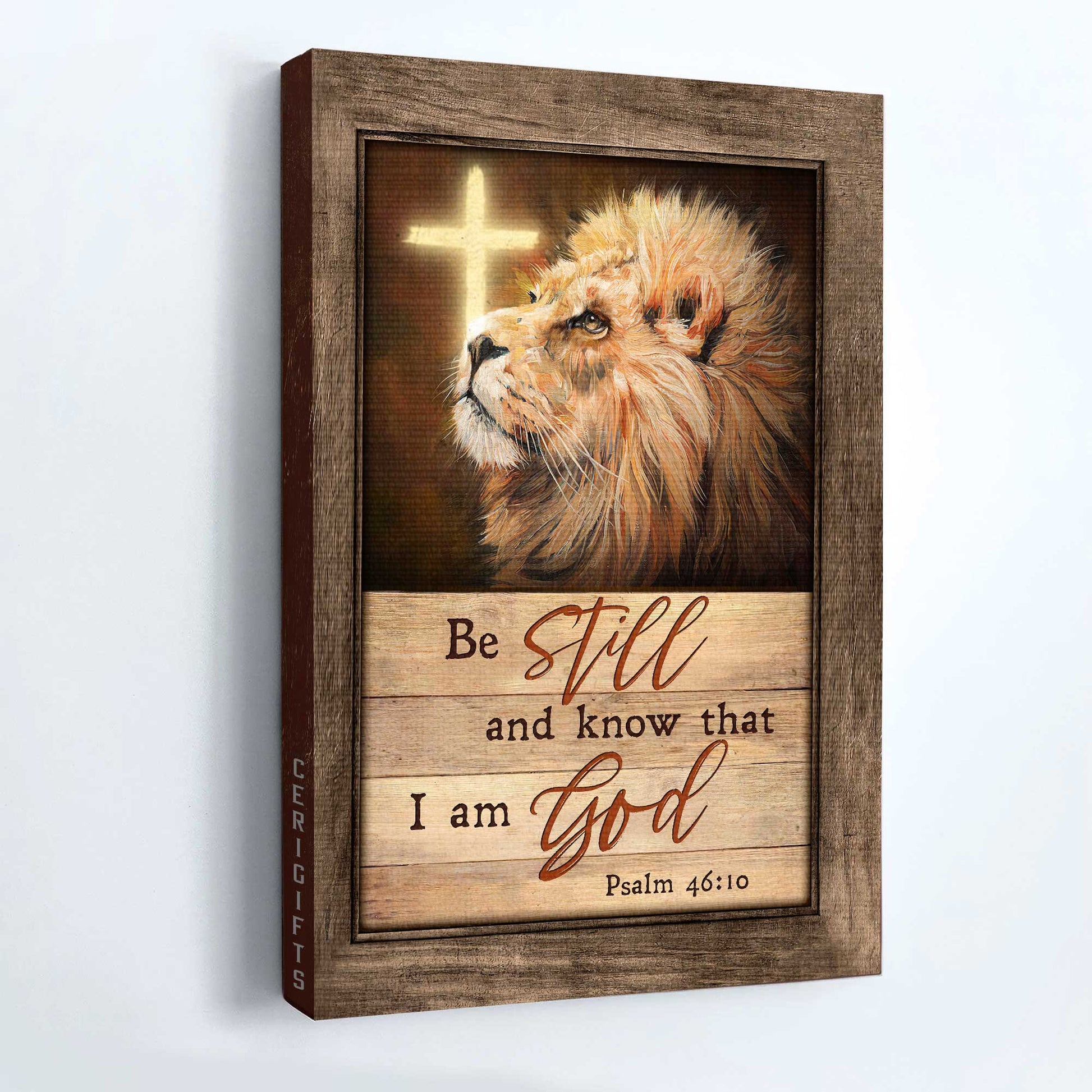 Jesus Portrait Canvas- Lion of Judah, Cross light- Gift for Christian- Be still and know that I am God - Portrait Canvas Prints, Christian Wall Art