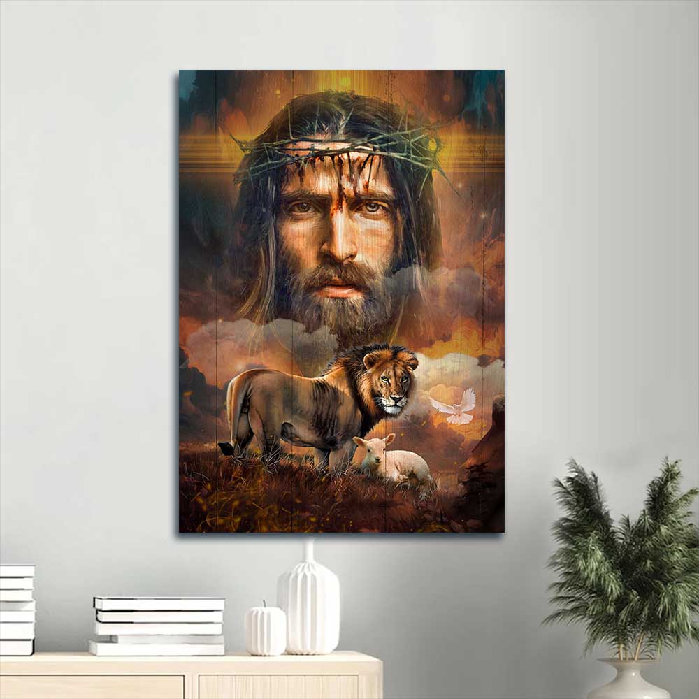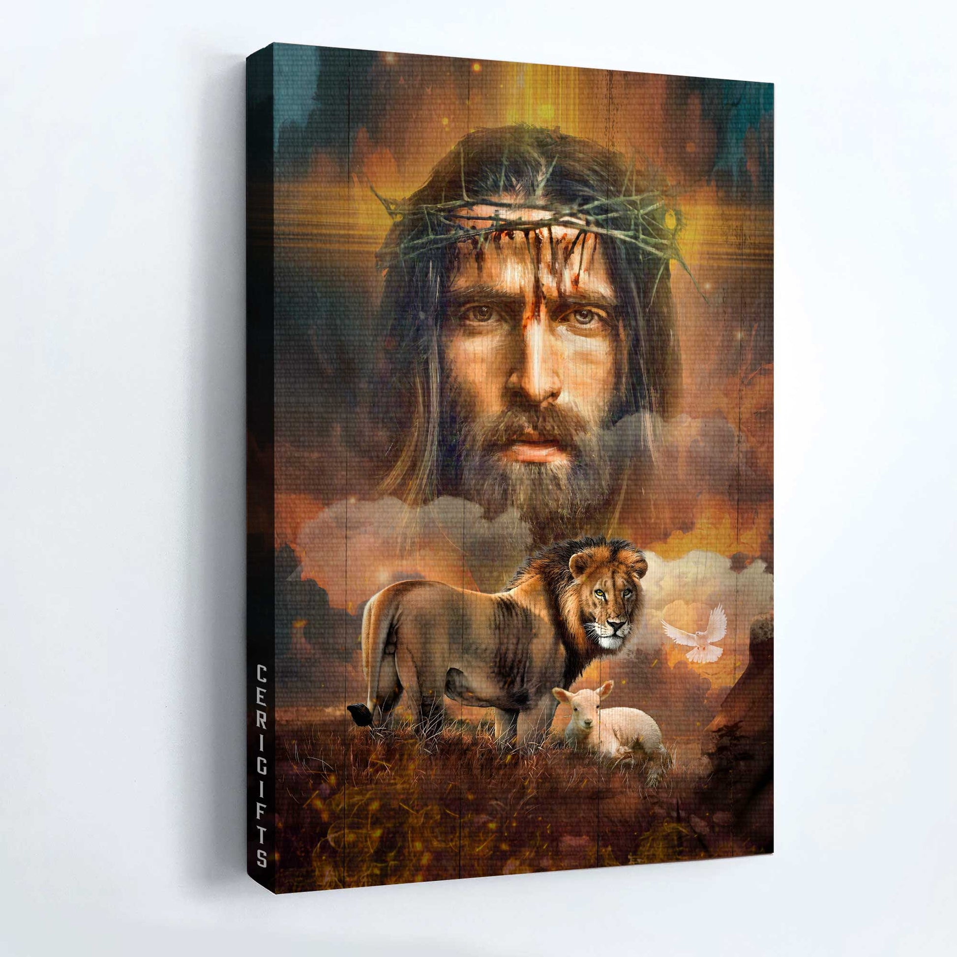 Jesus Portrait Canvas - Lion of Judah, Lamb of God, Holy spirit Dove Portrait Canvas - Inspirational gift, Gift For Christian