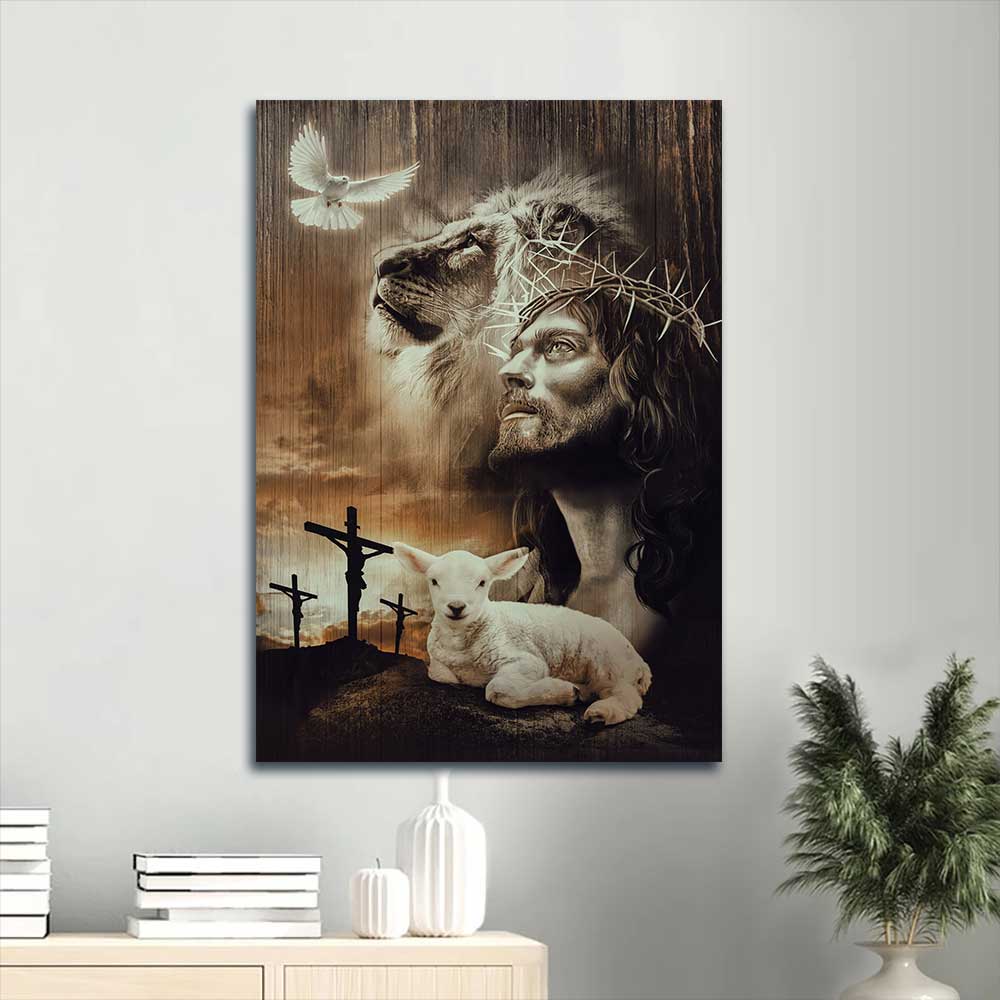 Jesus Portrait Canvas - Lion of Judah, Lamb of God, Jesus painting Canvas - Gift for Christian - The old rugged crosses Portrait Canvas is gorgeous canvas which can be hung in any room in your house such as living room, bedroom, kitchen or even outdoor space.