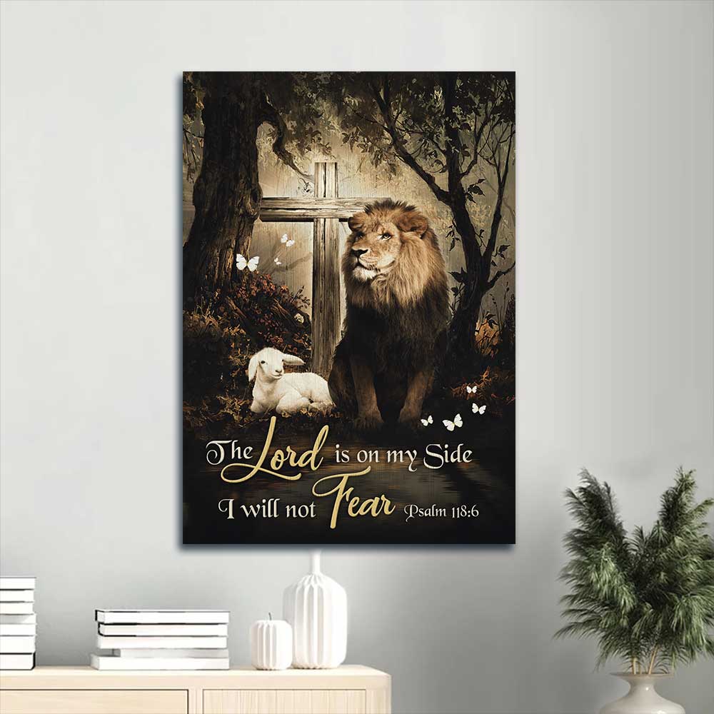 Jesus Portrait Canvas - Lion of Judah, Lamb of God, Wooden cross, White butterfly Portrait Canvas - Gift For Christian - The Lord is on my side Portrait Canvas