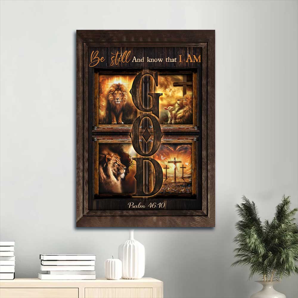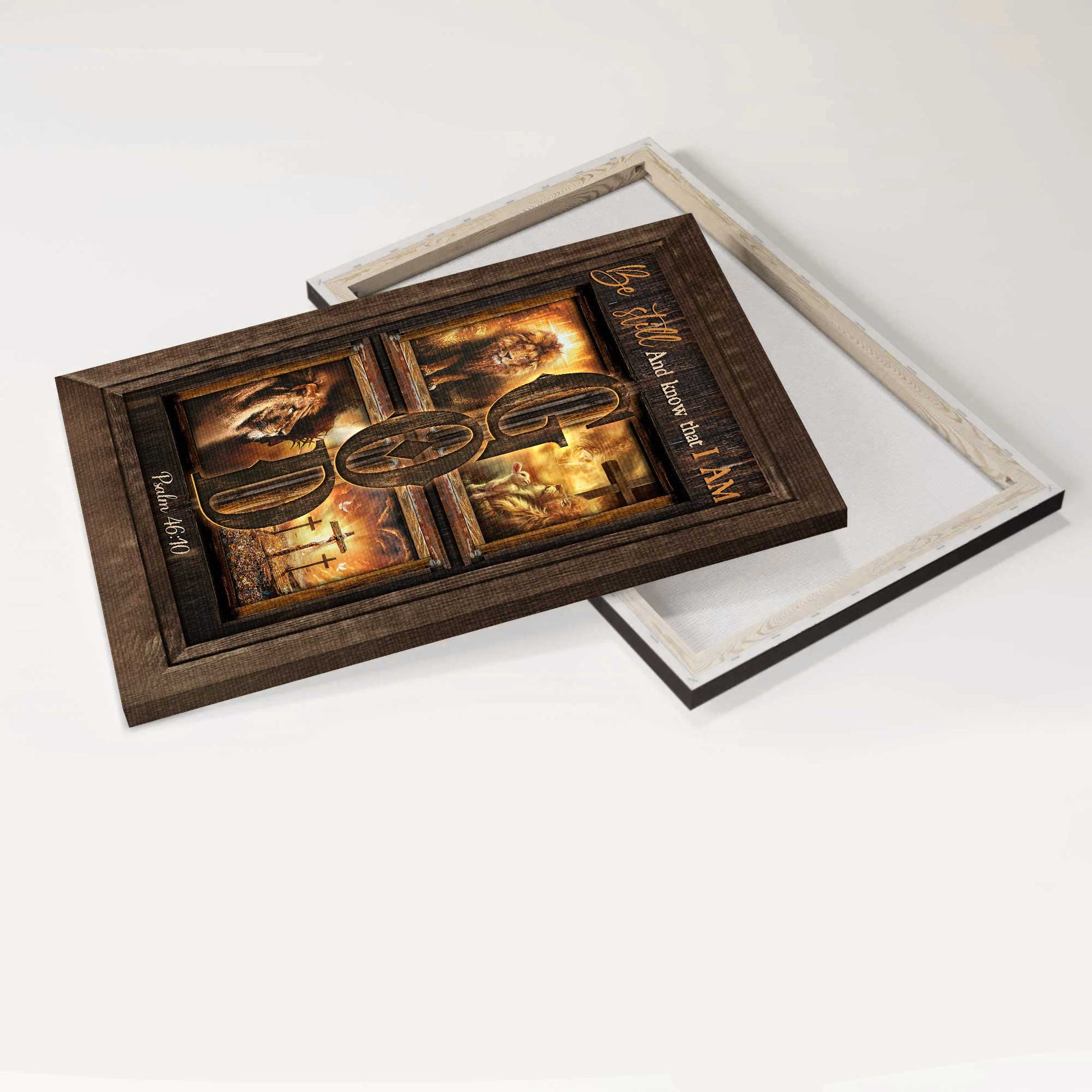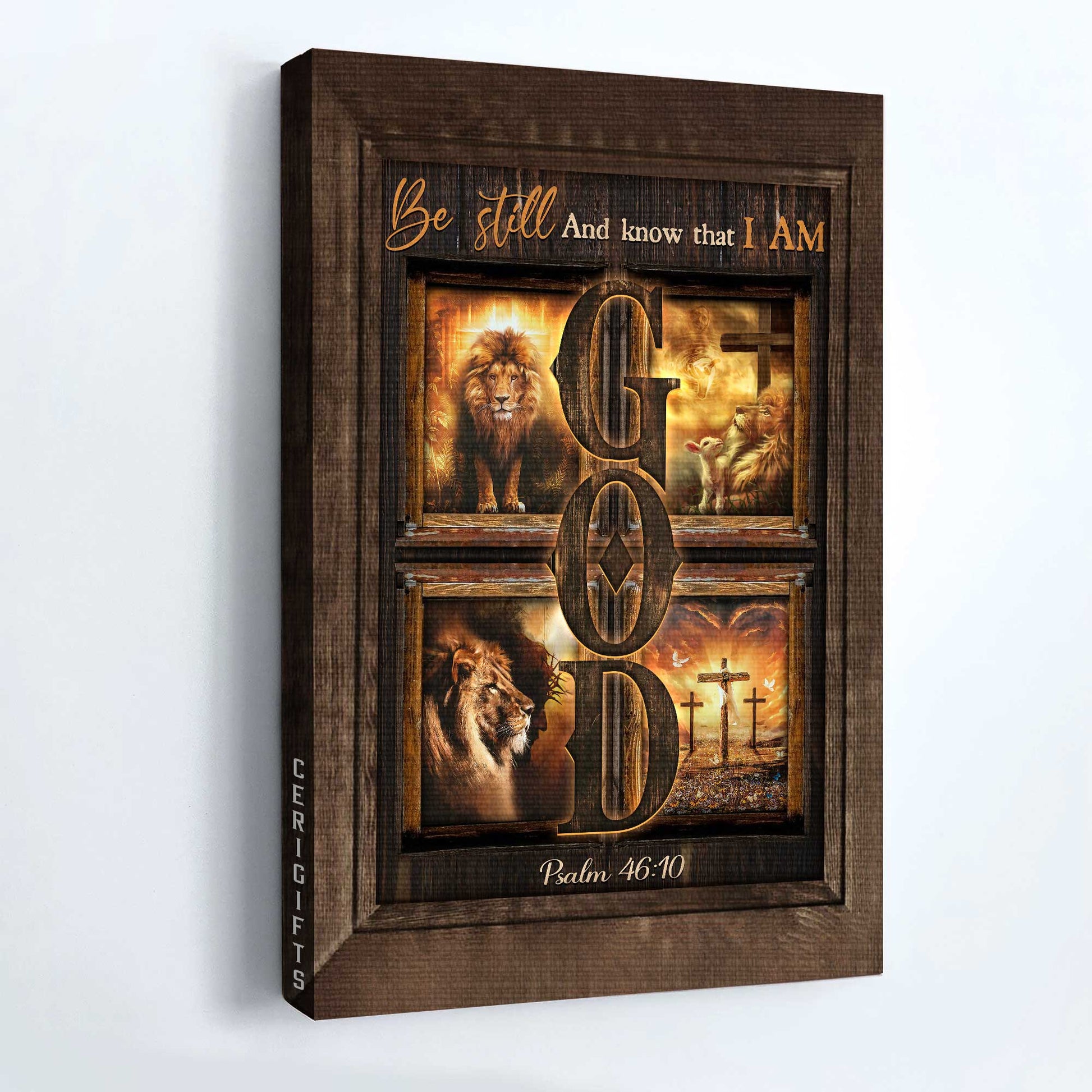 Jesus Portrait Canvas - Lion of Judah, Lion and lamb, Firelight Portrait Canvas - Gift For Christian - Be still I am God Portrait Canvas