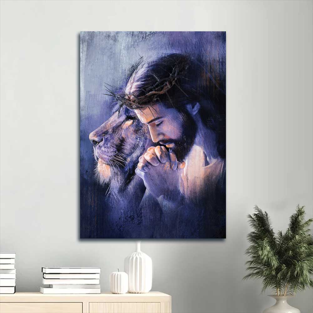 Jesus Portrait Canvas - Lion of Judah, Purple halo, Pray for healing, Crown of thorn Portrait Canvas - Gift For Christian Portrait Canvas