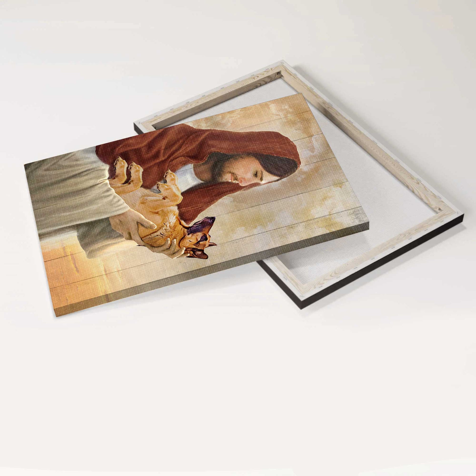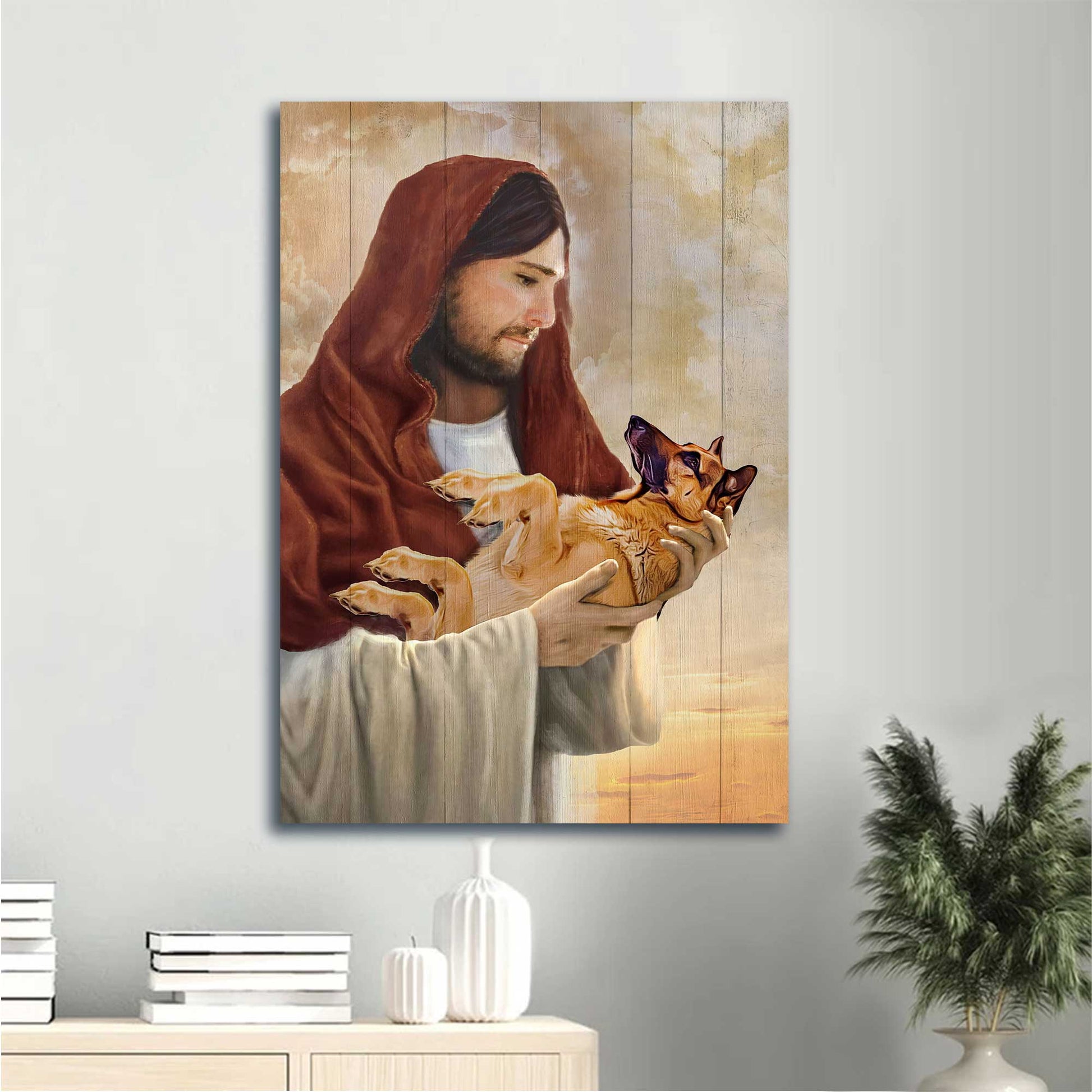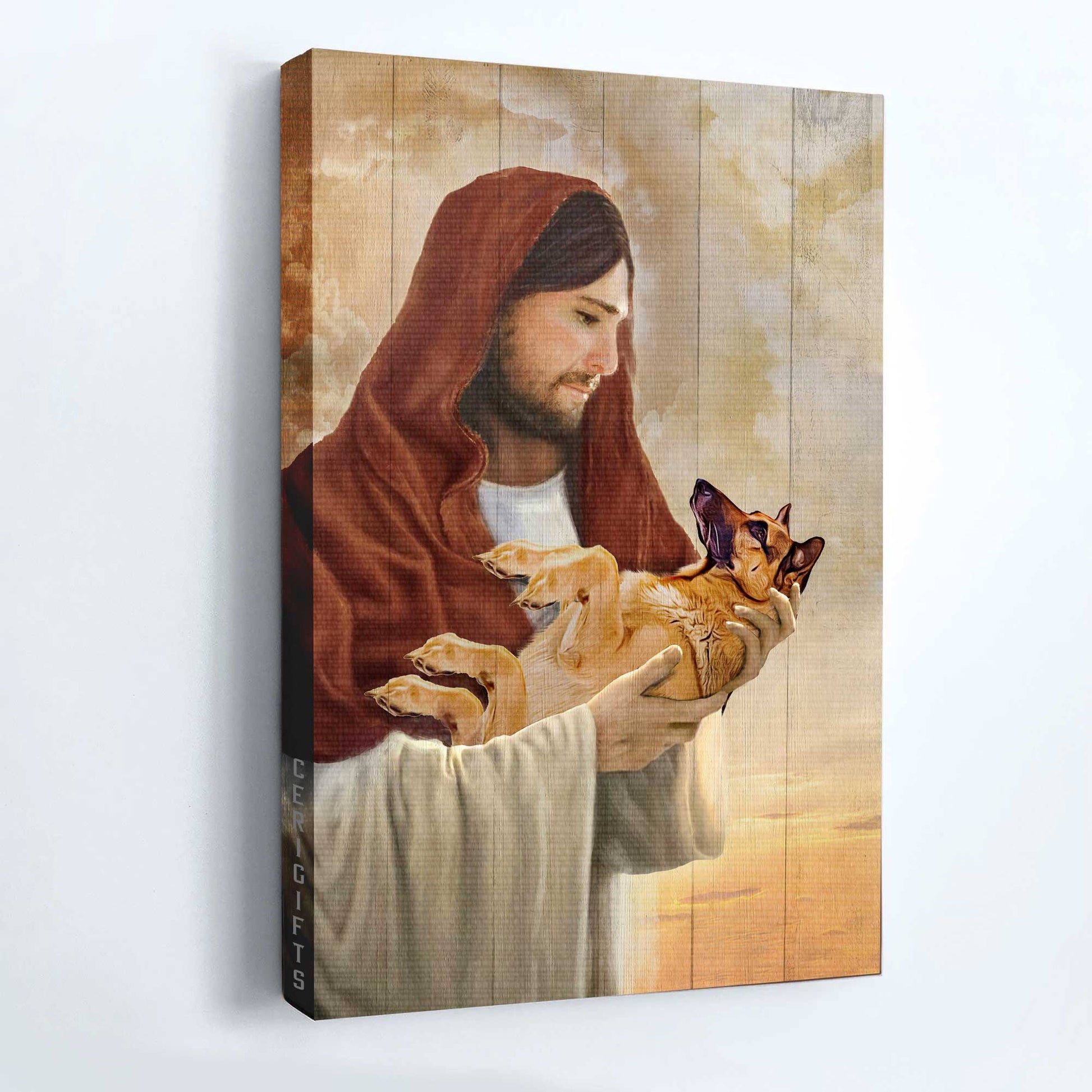 Jesus Portrait Canvas - Little German Shepherd, The world in his arm, Jesus artwork Portrait Canvas - Gift For Christian Portrait Canvas Prints, Christian Wall Art