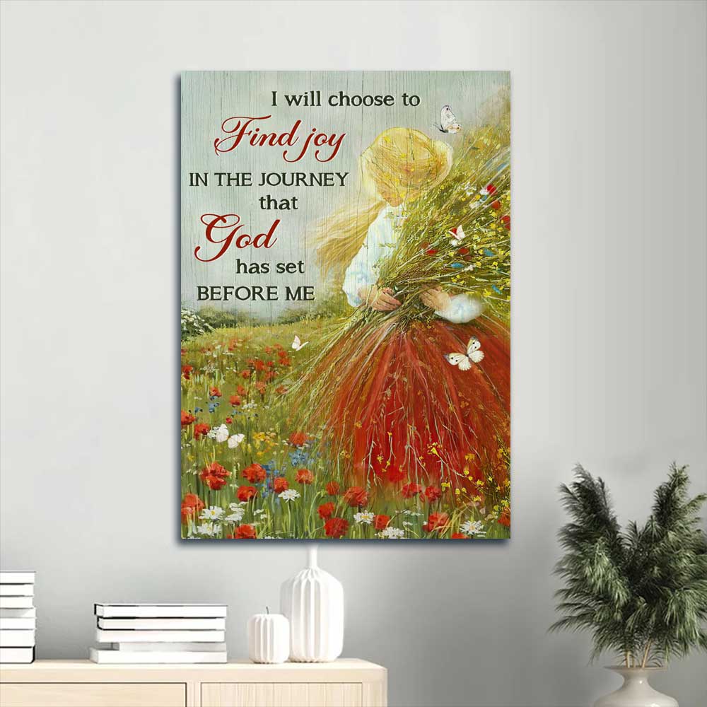 Jesus Portrait Canvas - Little girl, Brilliant flower garden Portrait Canvas - Gift For Christian - I will choose to find joy Portrait Canvas