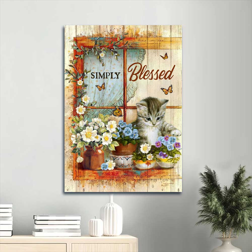 Jesus Portrait Canvas - Lively flower painting, Adorable kitten, Monarch butterfly Portrait Canvas - Gift For Christian - Simply blessed Portrait Canvas