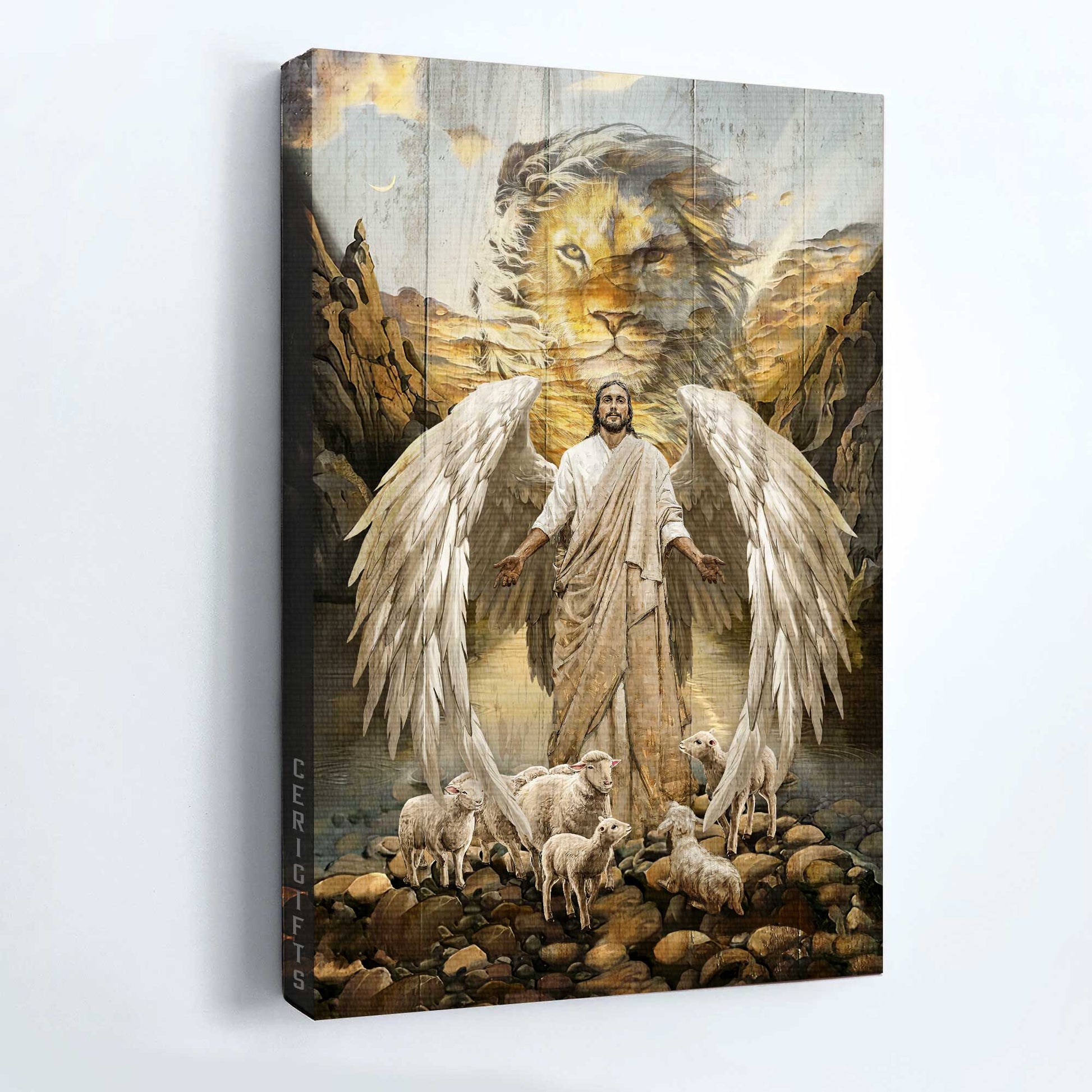 Jesus Portrait Canvas - Lord wings, Lion of Judah, Lambs of God, Desert valley Portrait Canvas - Gift For Christian Portrait Canvas Prints, Christian Wall Art
