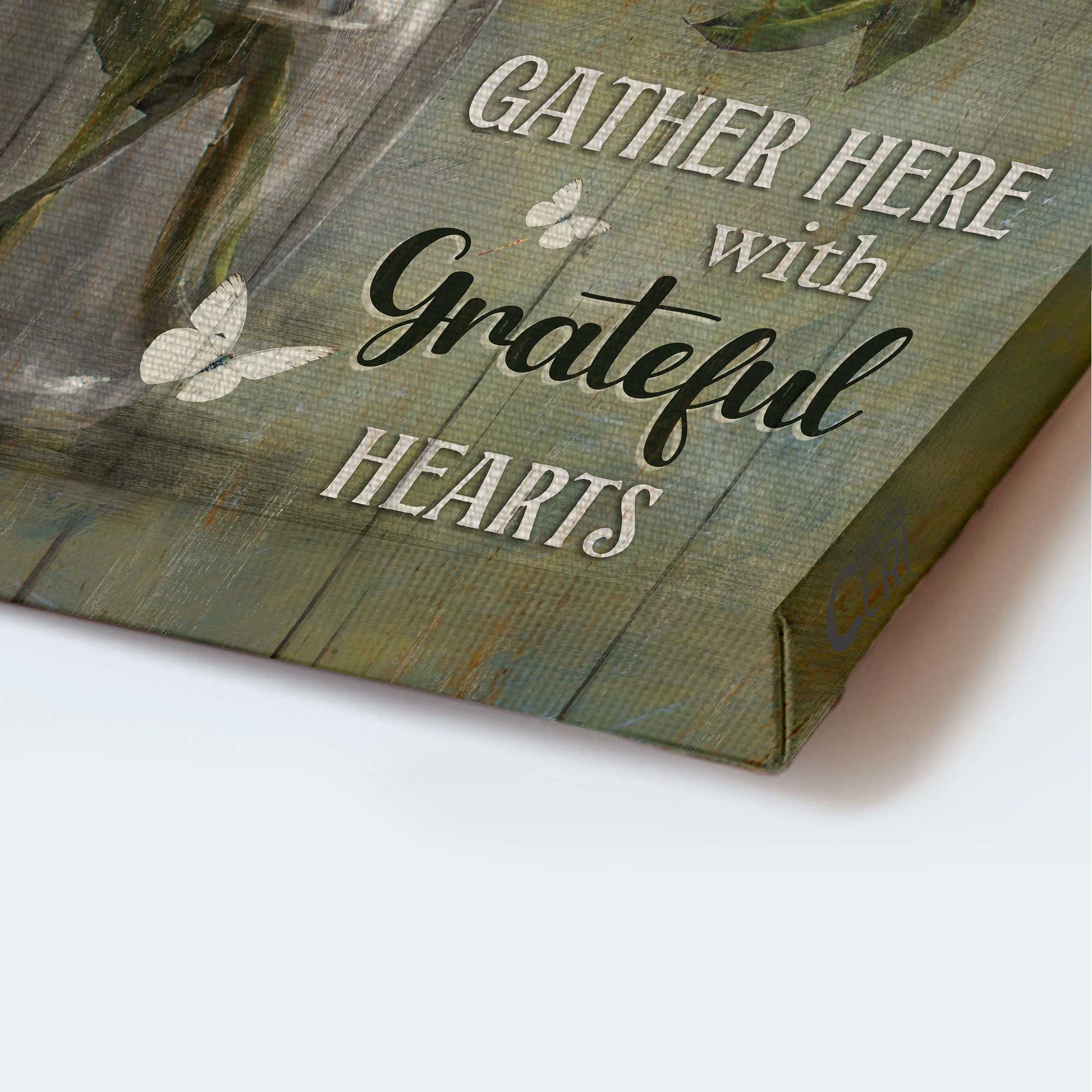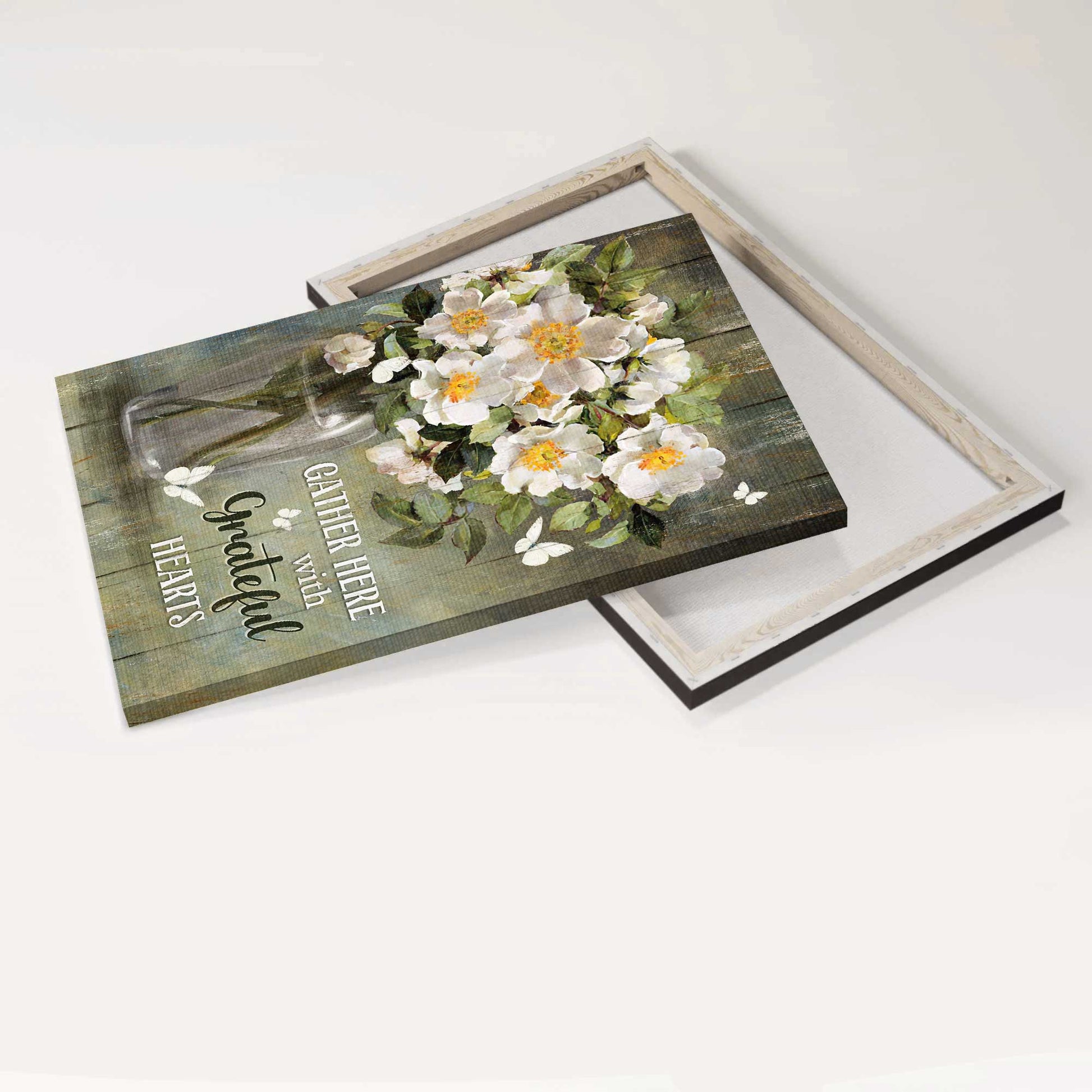 Jesus Portrait Canvas- Magnolias flower, Still Painting, White butterfly canvas- Gift for Christian- Gather here with grateful hearts - Portrait Canvas Prints, Wall Art