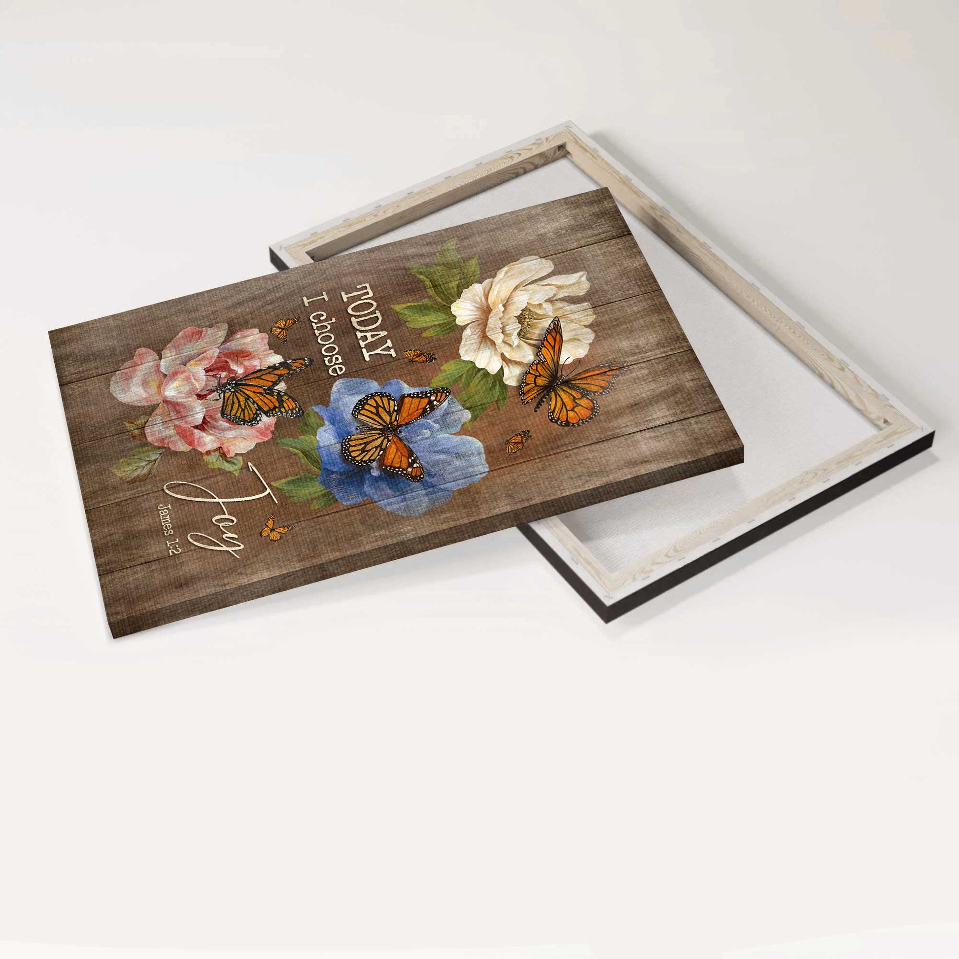Jesus Portrait Canvas- Monarch butterfly, Colorful camellia, Sweet garden canvas- Gift for Christian- Today I choose joy - Portrait Canvas Prints, Christian Wall Art.